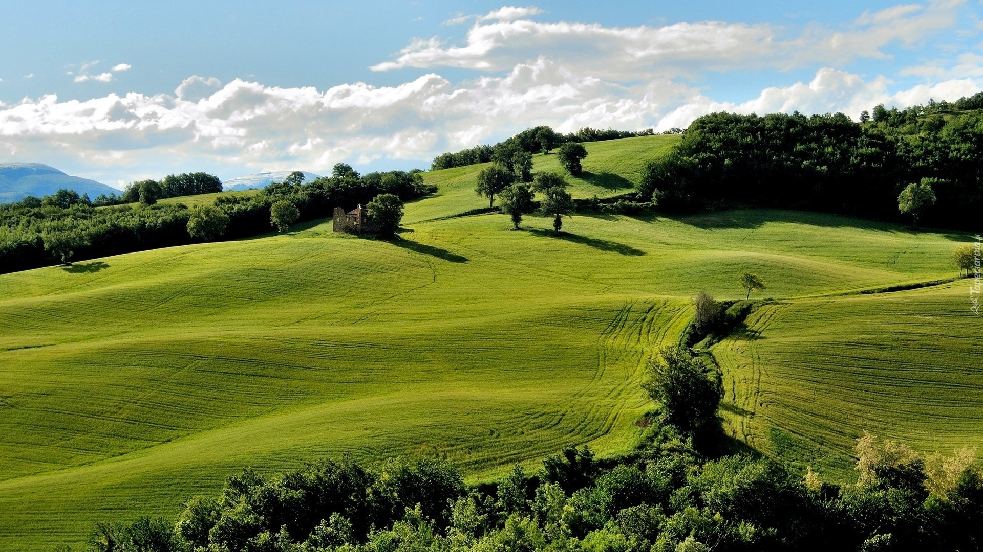 Edytor tapety: Wzgórza, Łąki, Pola, Drzewa