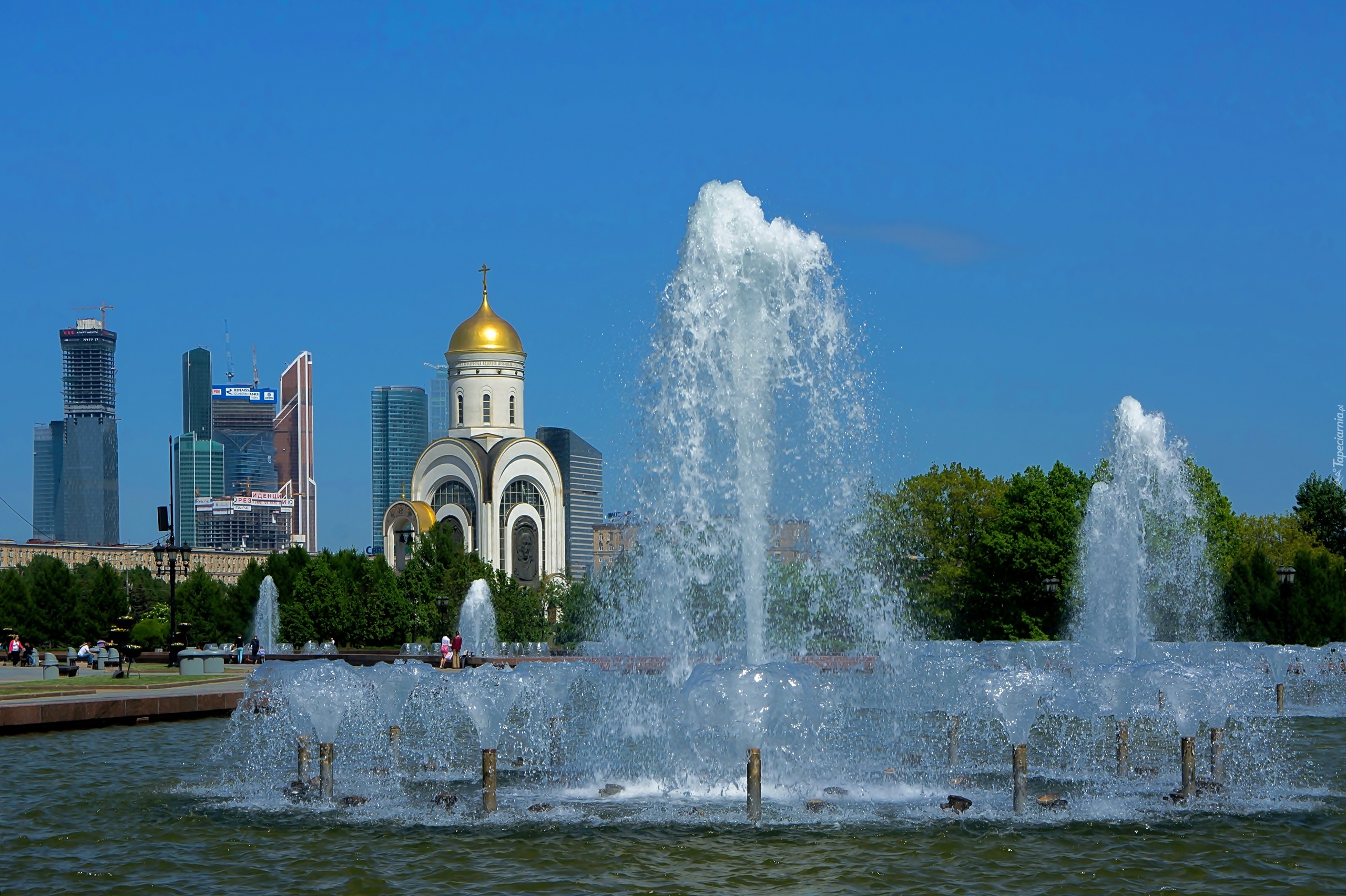 Edytor tapety: Cerkiew, Fontanna, Drzewa