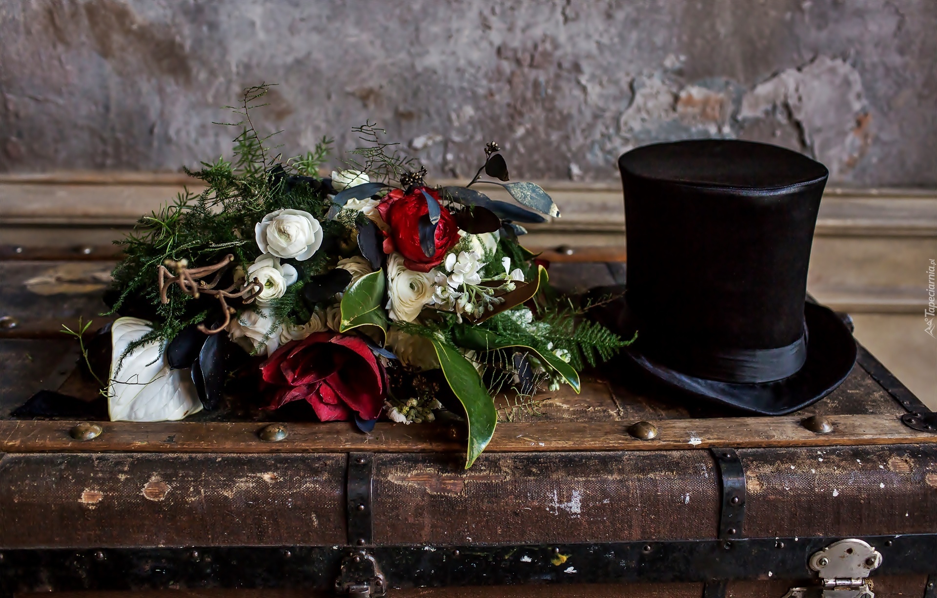 Edytor tapety: Bukiet, Kwiatów, Stara, Skrzynia, Cylinder