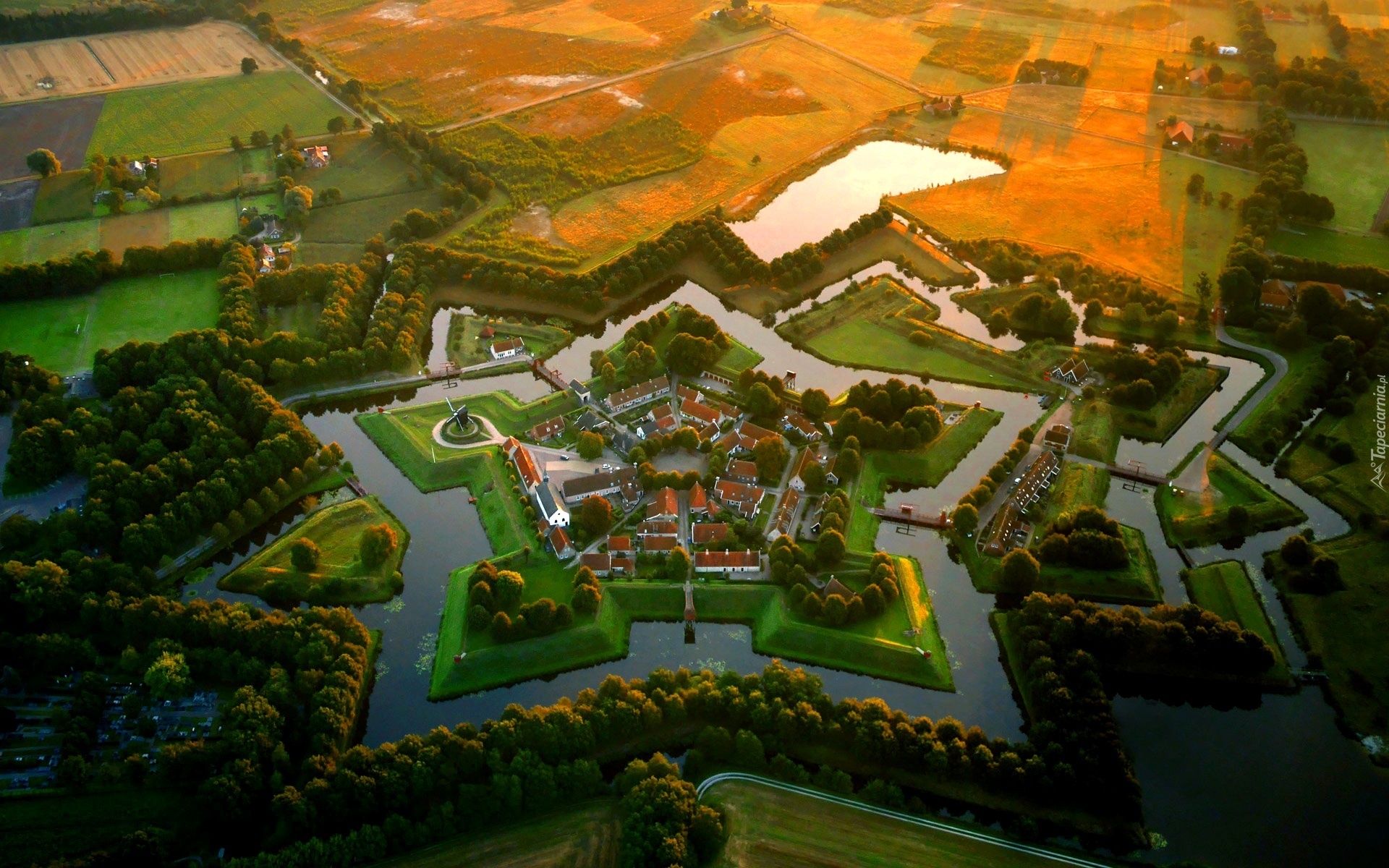 Edytor tapety: Holandia, Bourtange, Twierdza, Fosa, Z lotu ptaka
