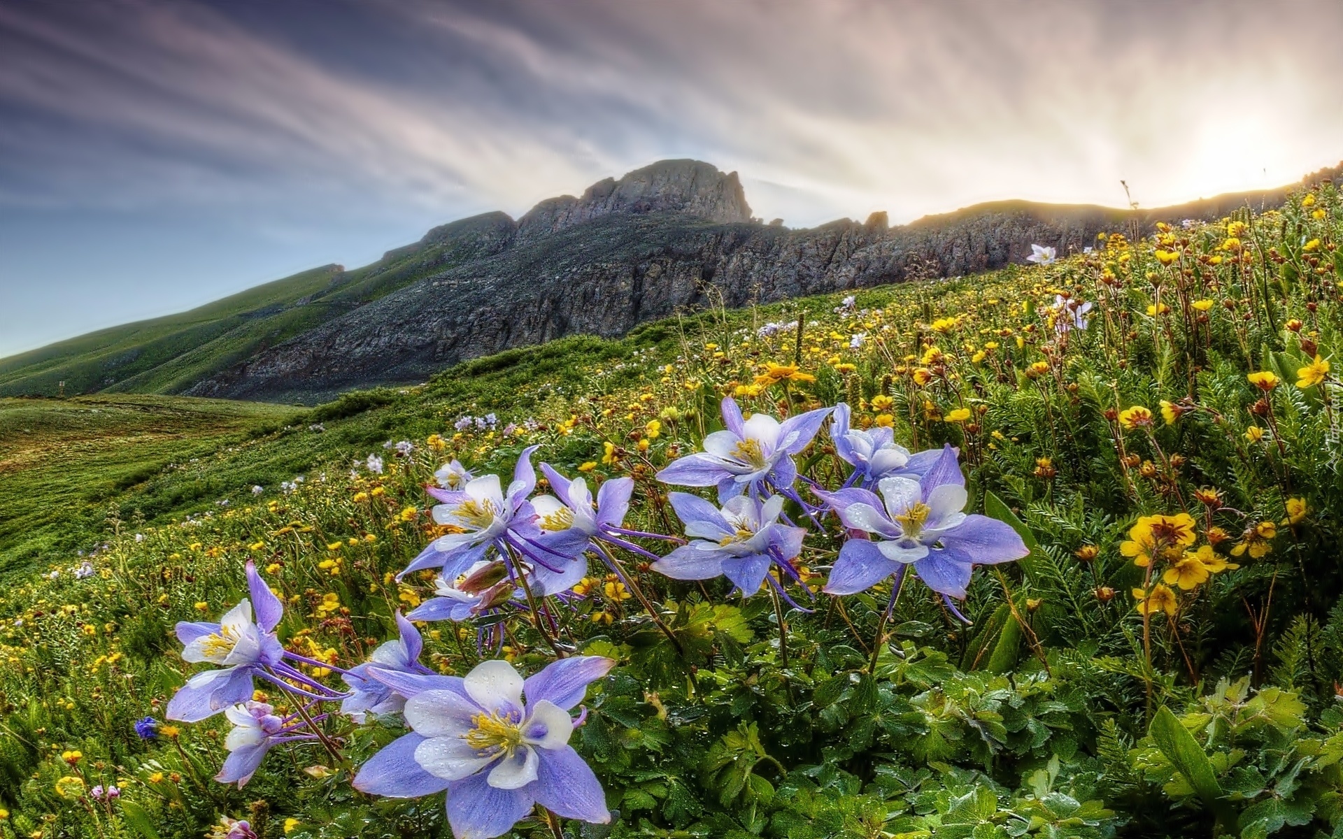 Edytor tapety: Góry, Łąka, Kwiaty