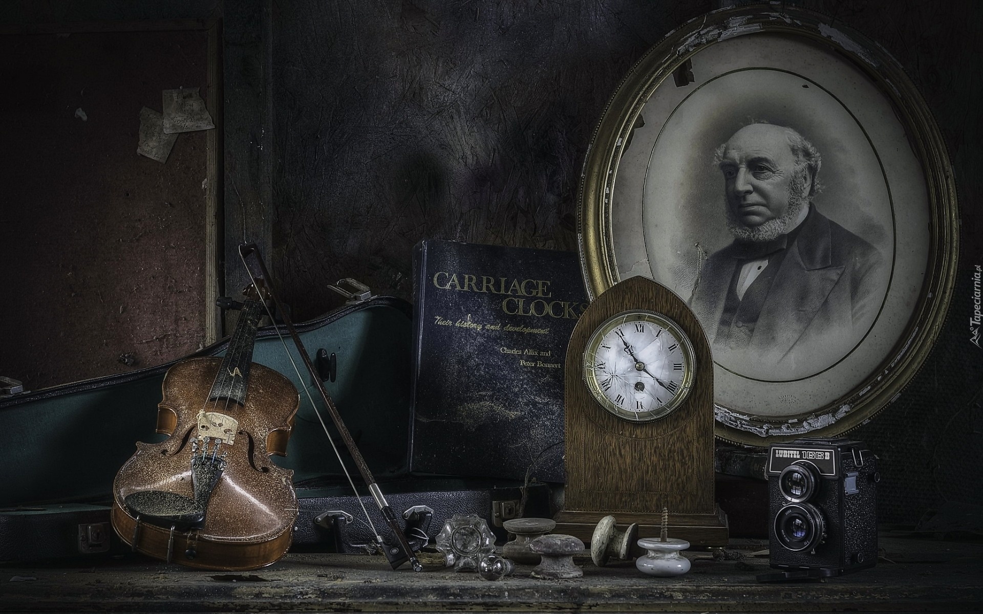 Edytor tapety: Antyki, Zdjęcie, Książka, Aparat, Zegar, Skrzypce
