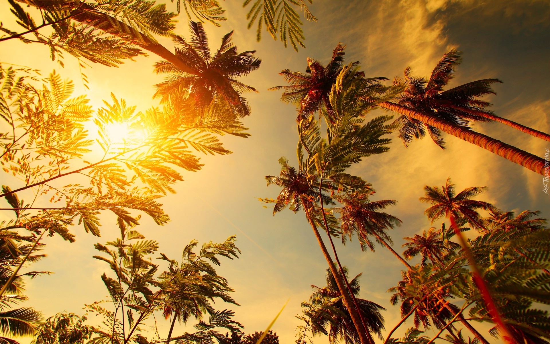 Edytor tapety: Palmy, Zachód Słońca, Niebo