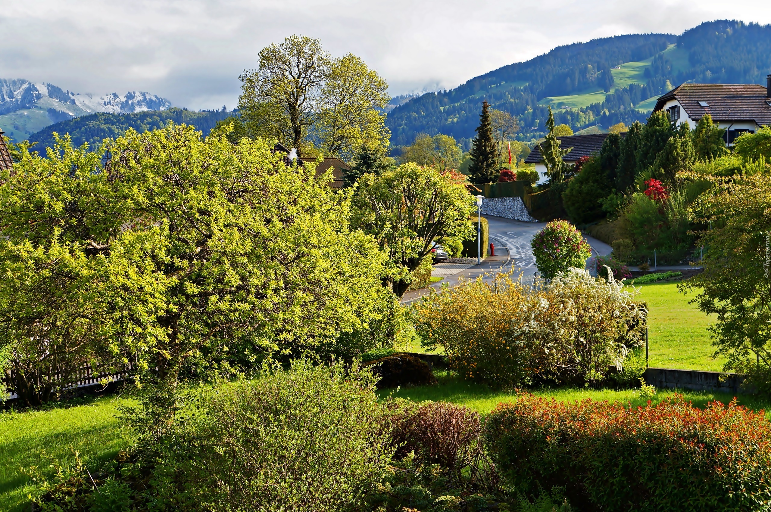 Edytor tapety: Góry, Dolina, Droga, Wioska
