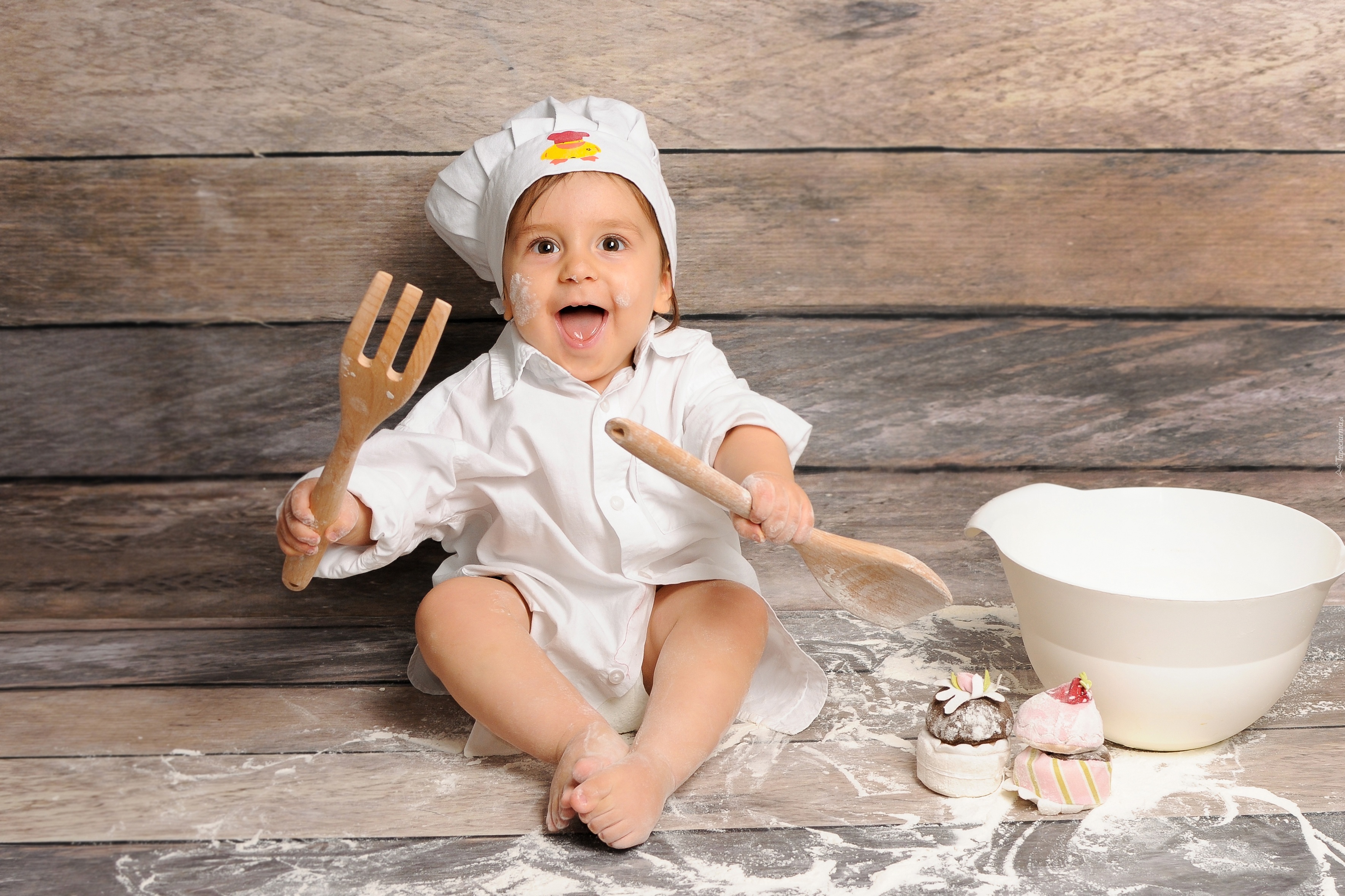 Edytor tapety: Dziecko, Dziewczynka, Przybory, Kuchenne, Babeczki