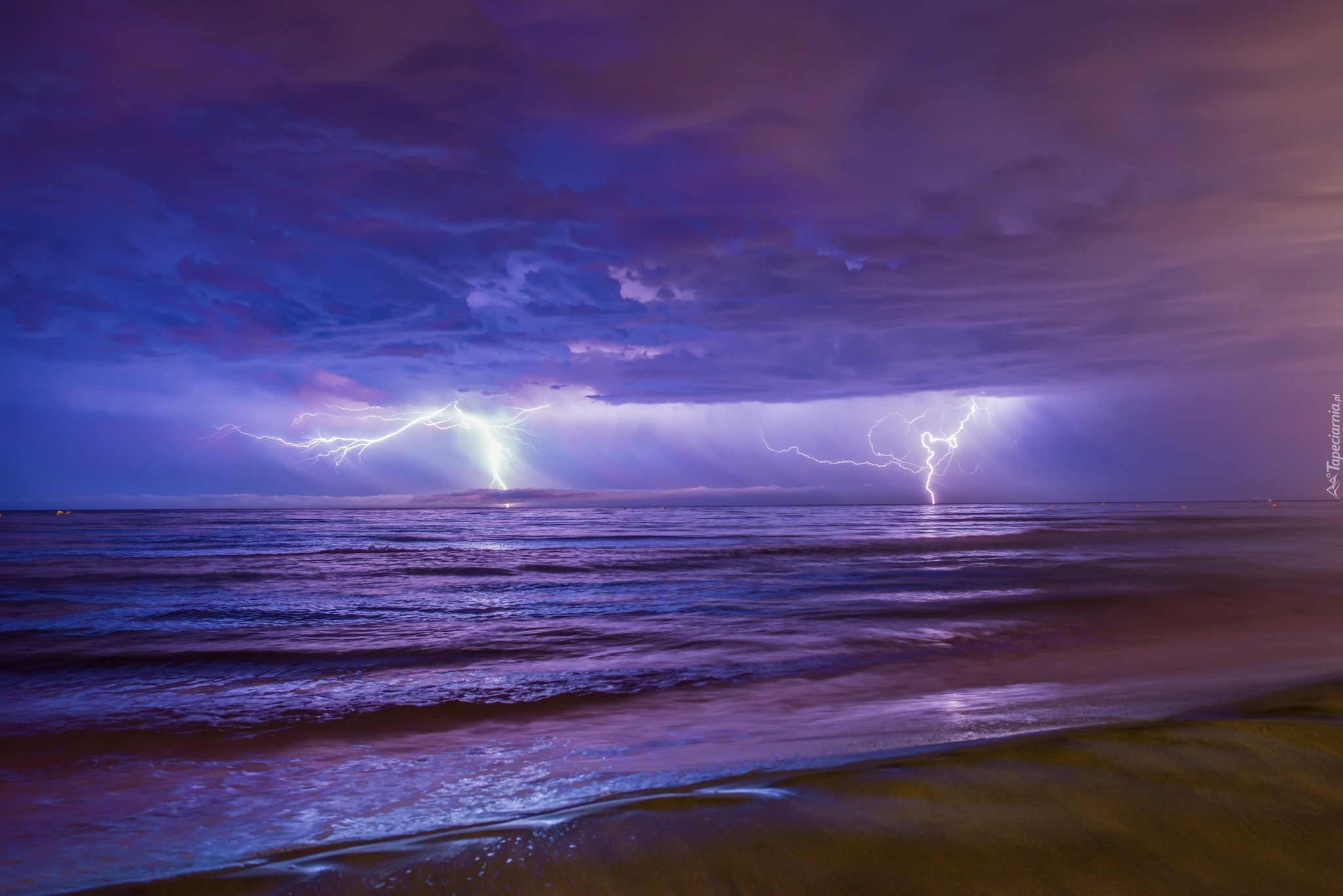 Edytor tapety: Burza, Pioruny, Morze, Plaża, Niebo