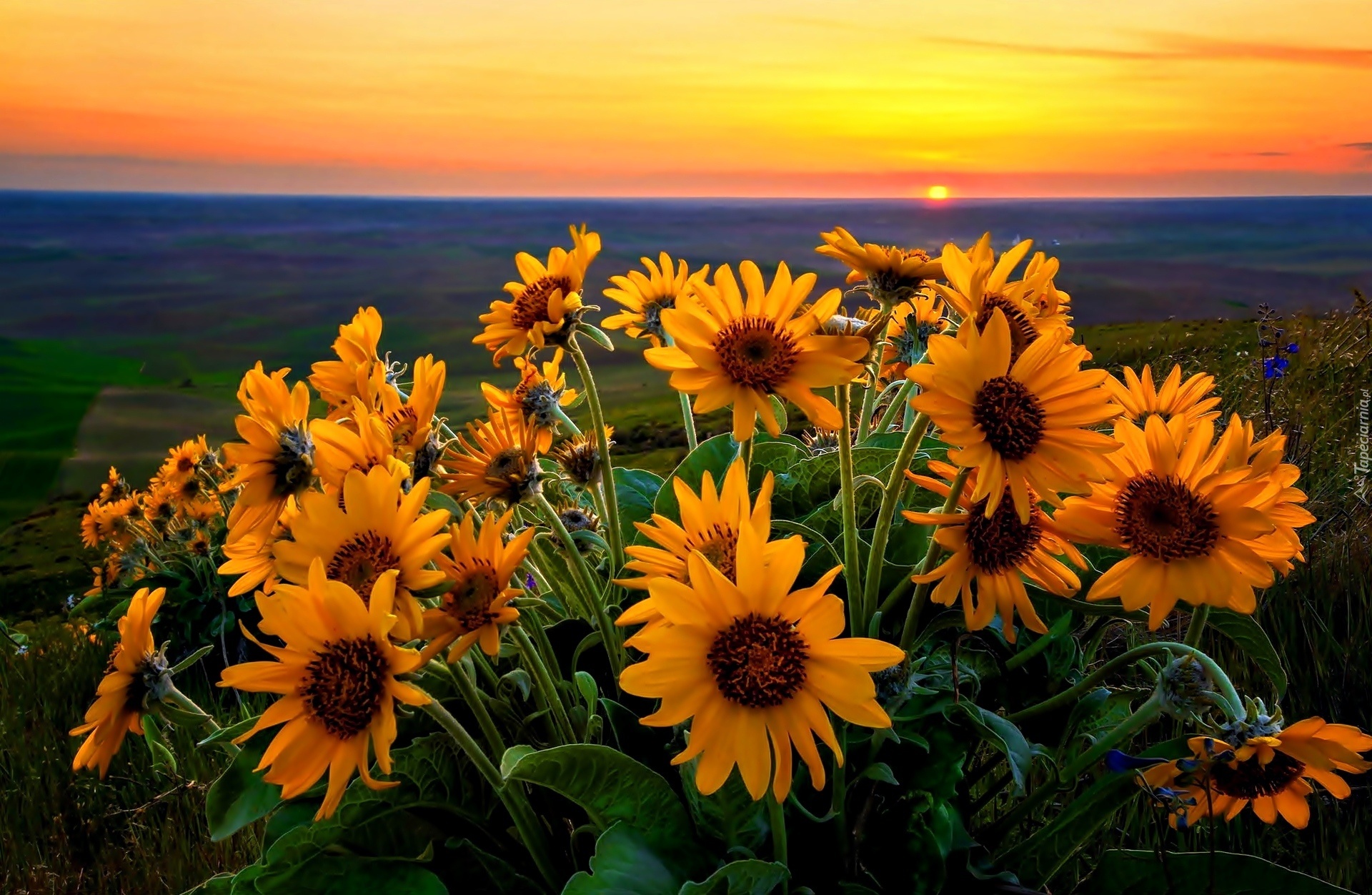 Edytor tapety: Kwiaty, Słoneczniki, Zachód Słońca