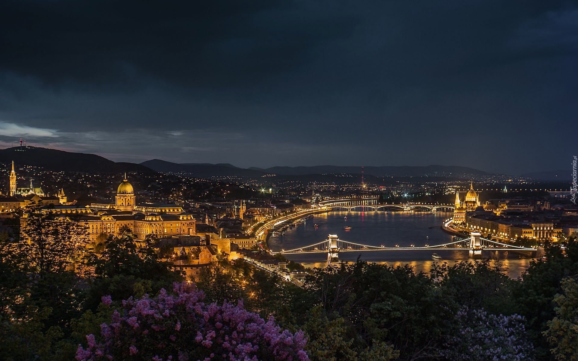 Edytor tapety: Węgry, Budapeszt, Miasto, Nocą, Rzeka, Most