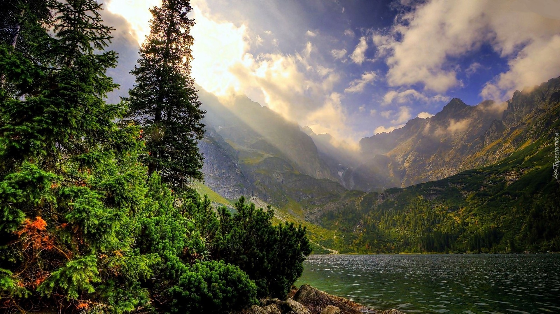 Edytor tapety: Góry, Jezioro, Chmury, Świt