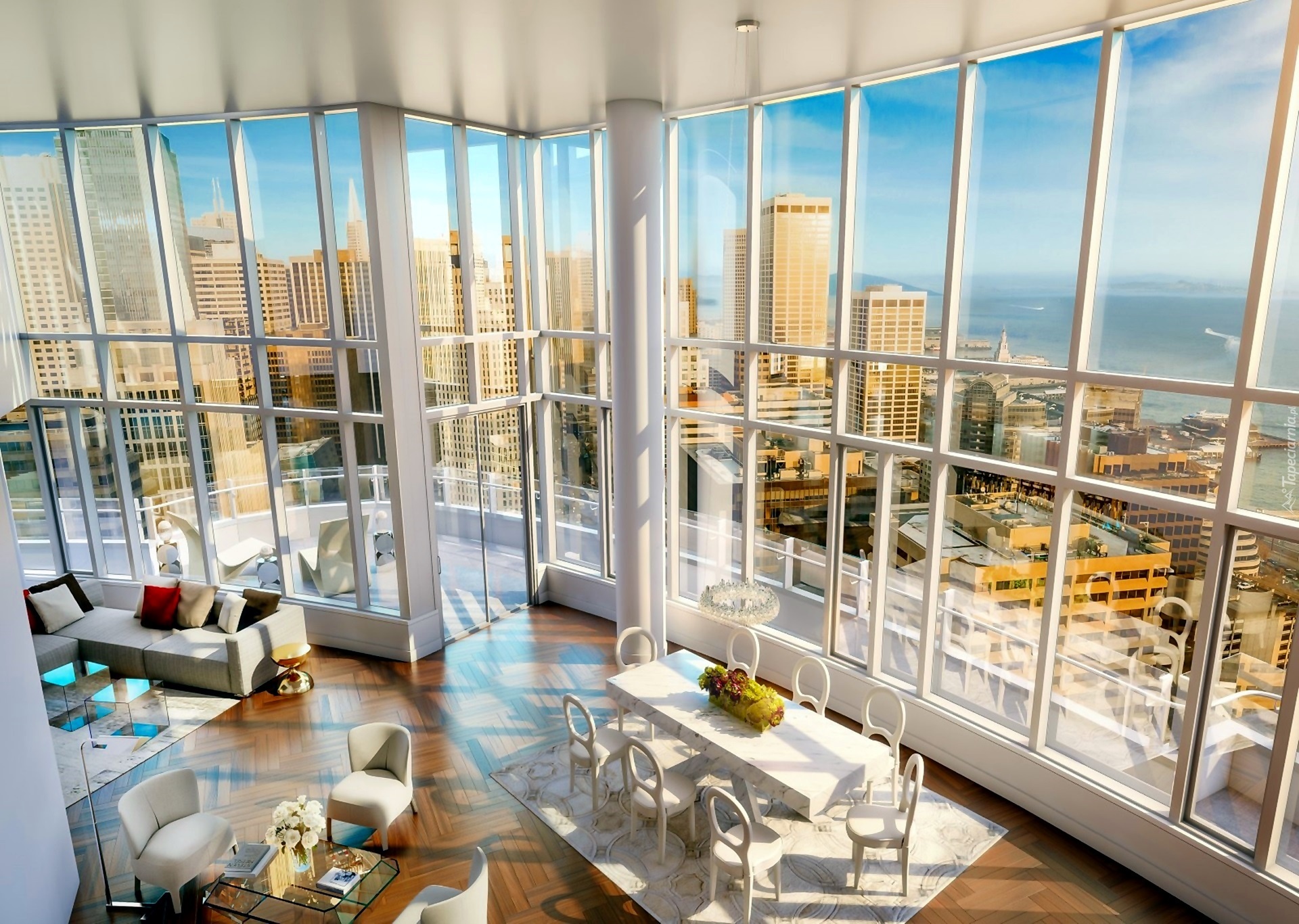 Edytor tapety: Pokój, Widokowe, Duże, Okna, Taras