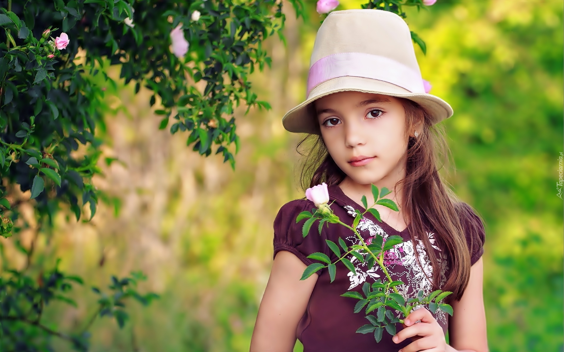 Edytor tapety: Dziewczynka, Kapelusz, Róża