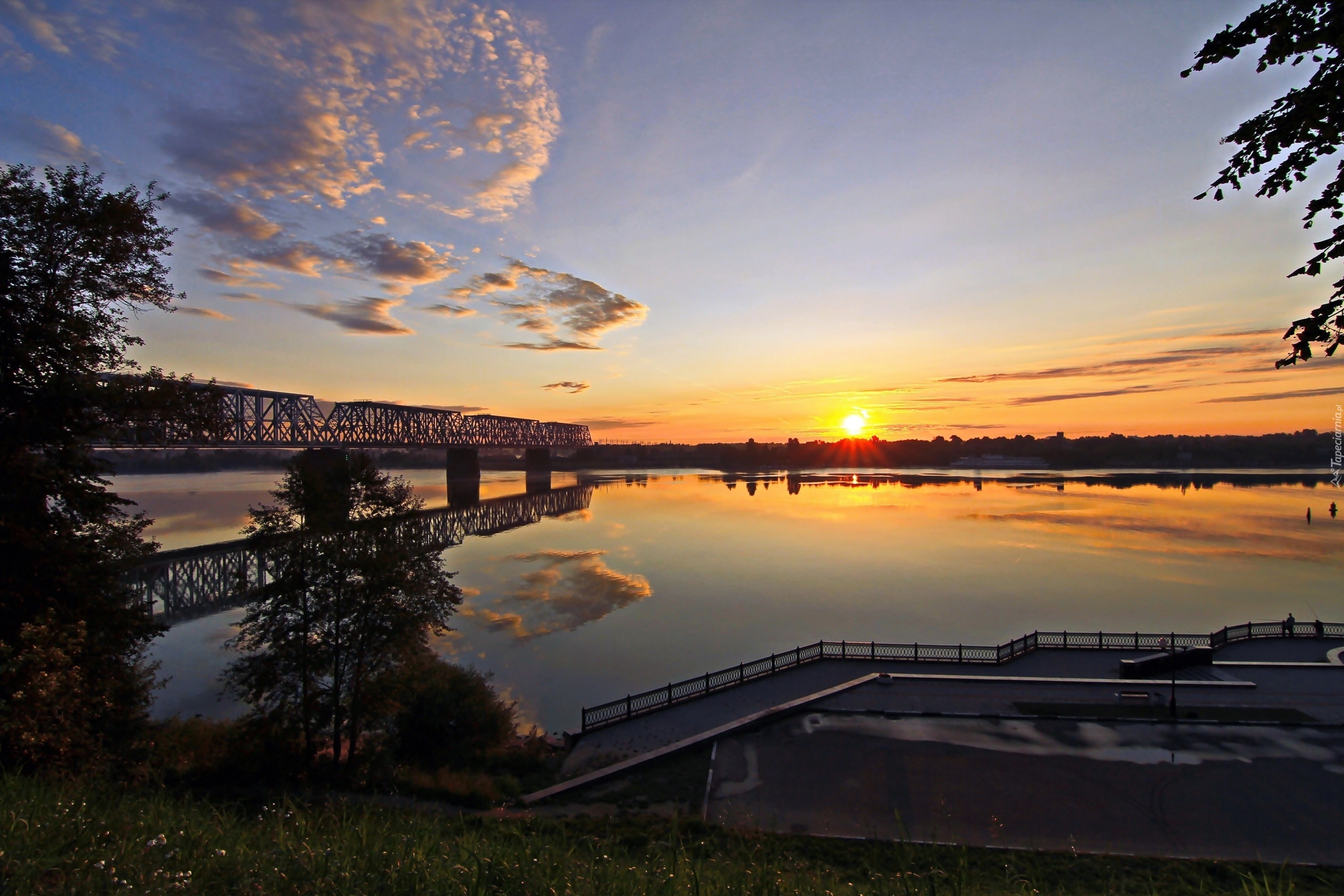 Edytor tapety: Rzeka, Most, Zachód, Słońca