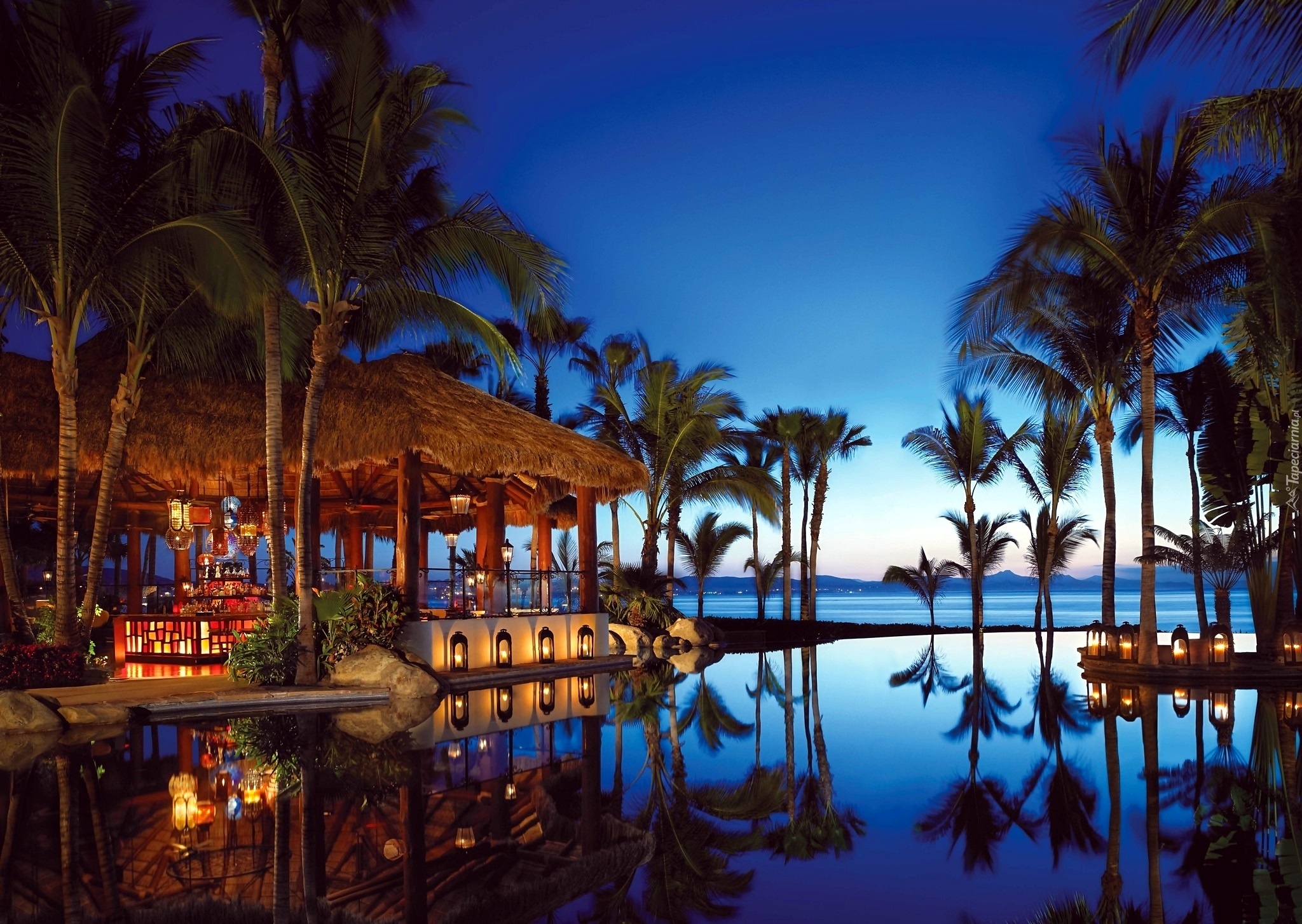 Edytor tapety: Basen, Ośrodek, Wakacje, Ocean, Wieczór, Meksyk