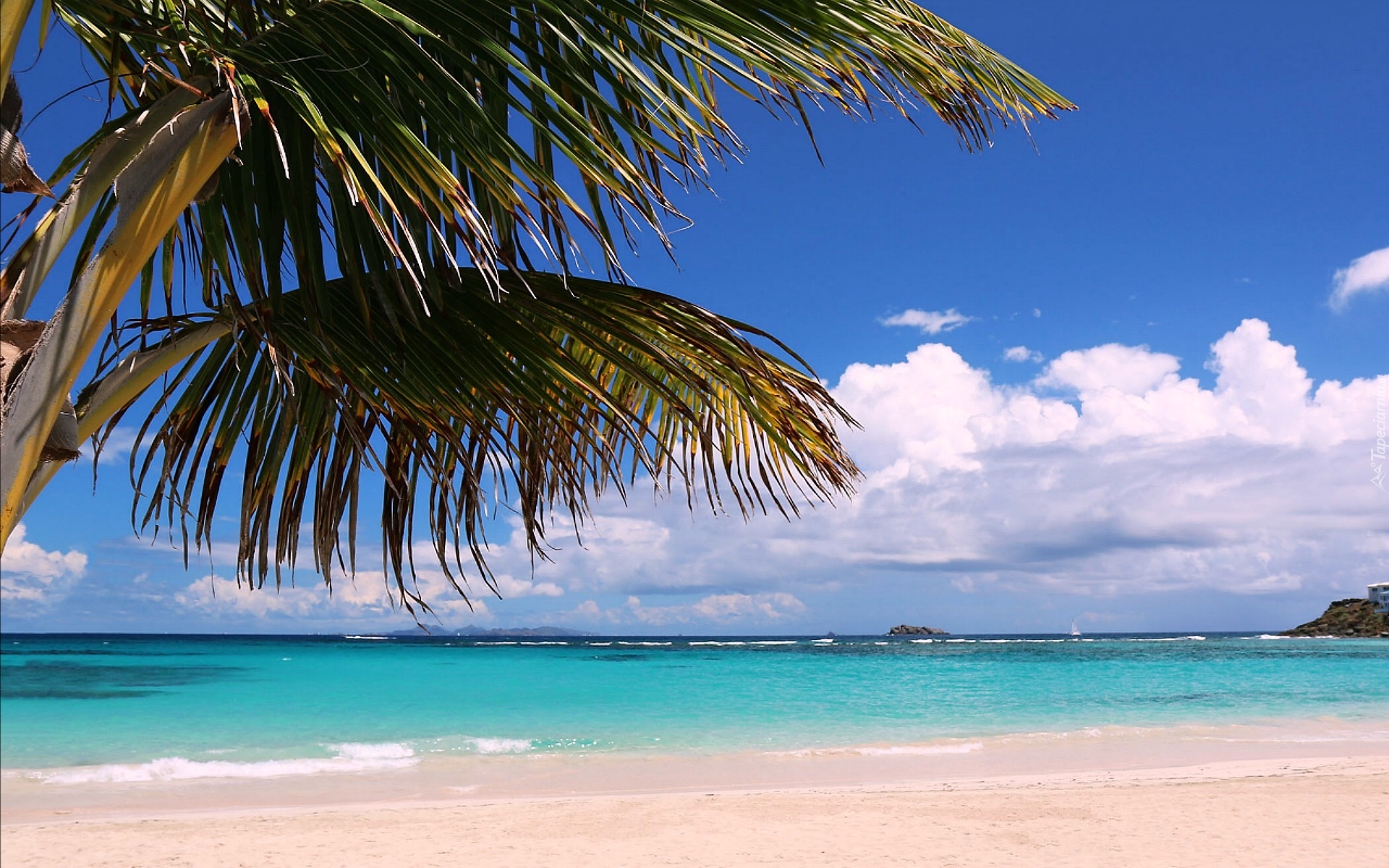 Edytor tapety: Lato, Plaża, Morze, Palmy, Chmury