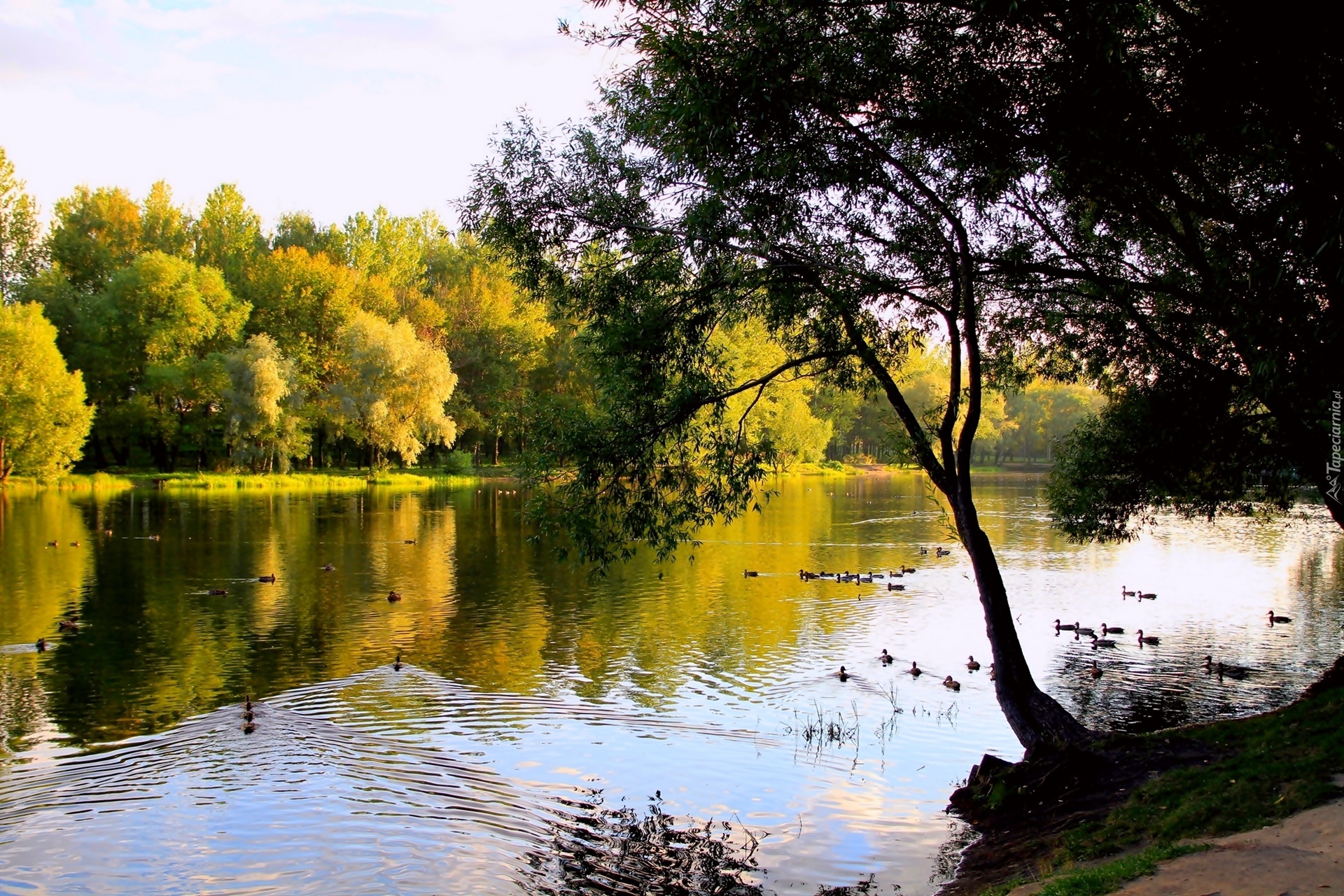 Edytor tapety: Park, Jesień, Rzeka, Pływające, Kaczki