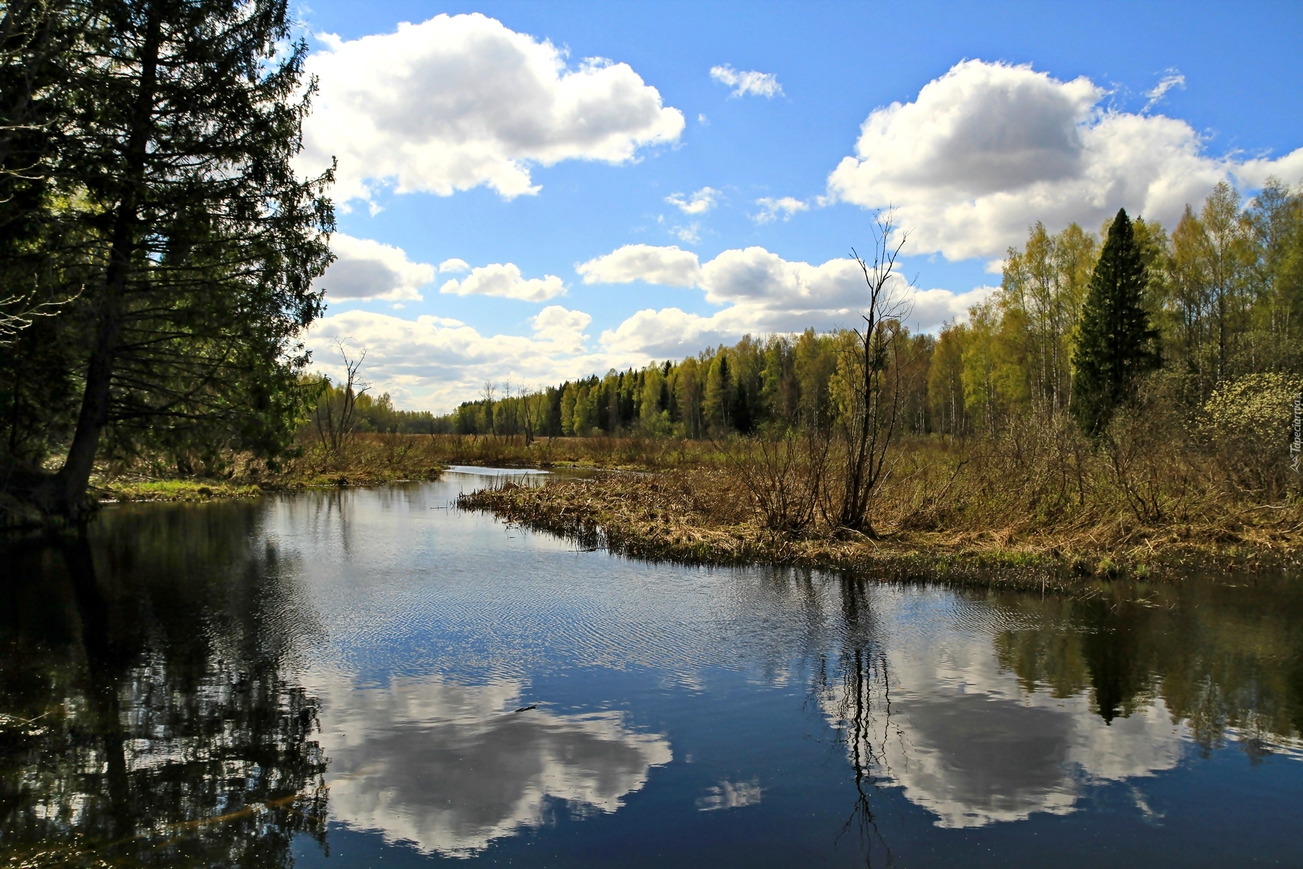 Edytor tapety: Rzeka, Chmury, Drzewa