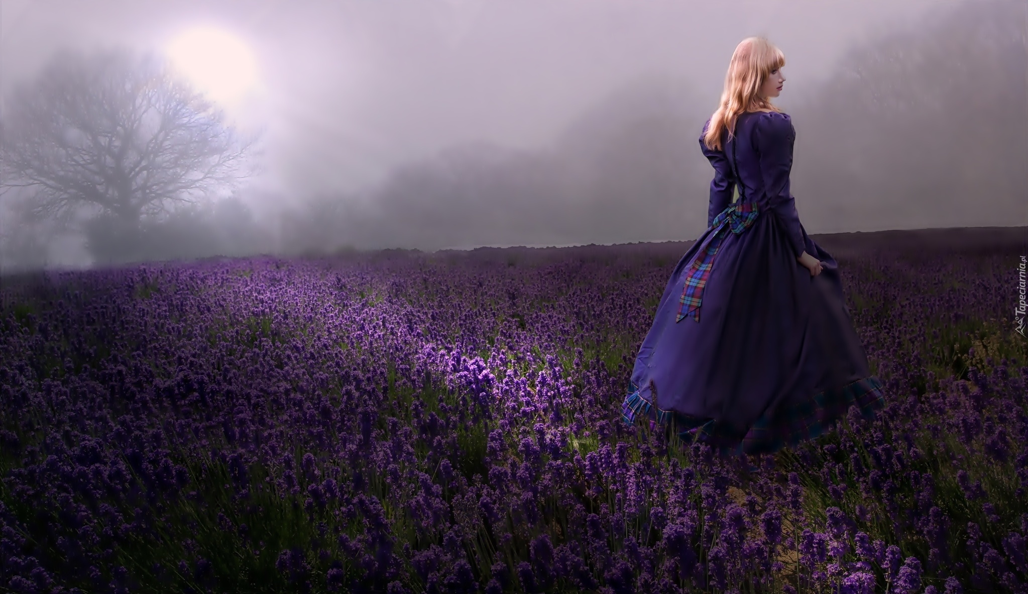 Edytor tapety: Kobieta, Suknia, Pole, Lawenda