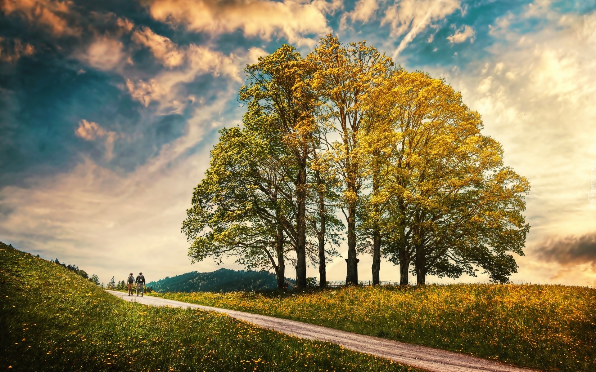 Edytor tapety: Pola, Droga, Drzewa, Obłoki