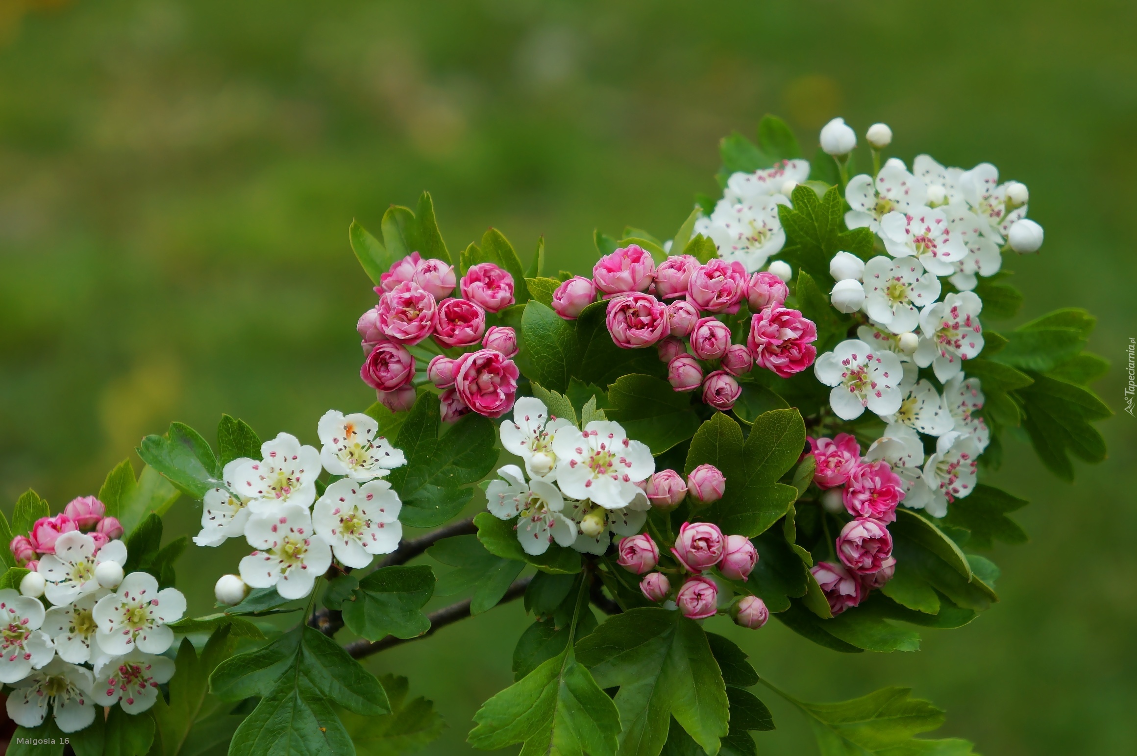 Edytor tapety: Różowo, Białe, Kwiaty, Gałązki, Głóg