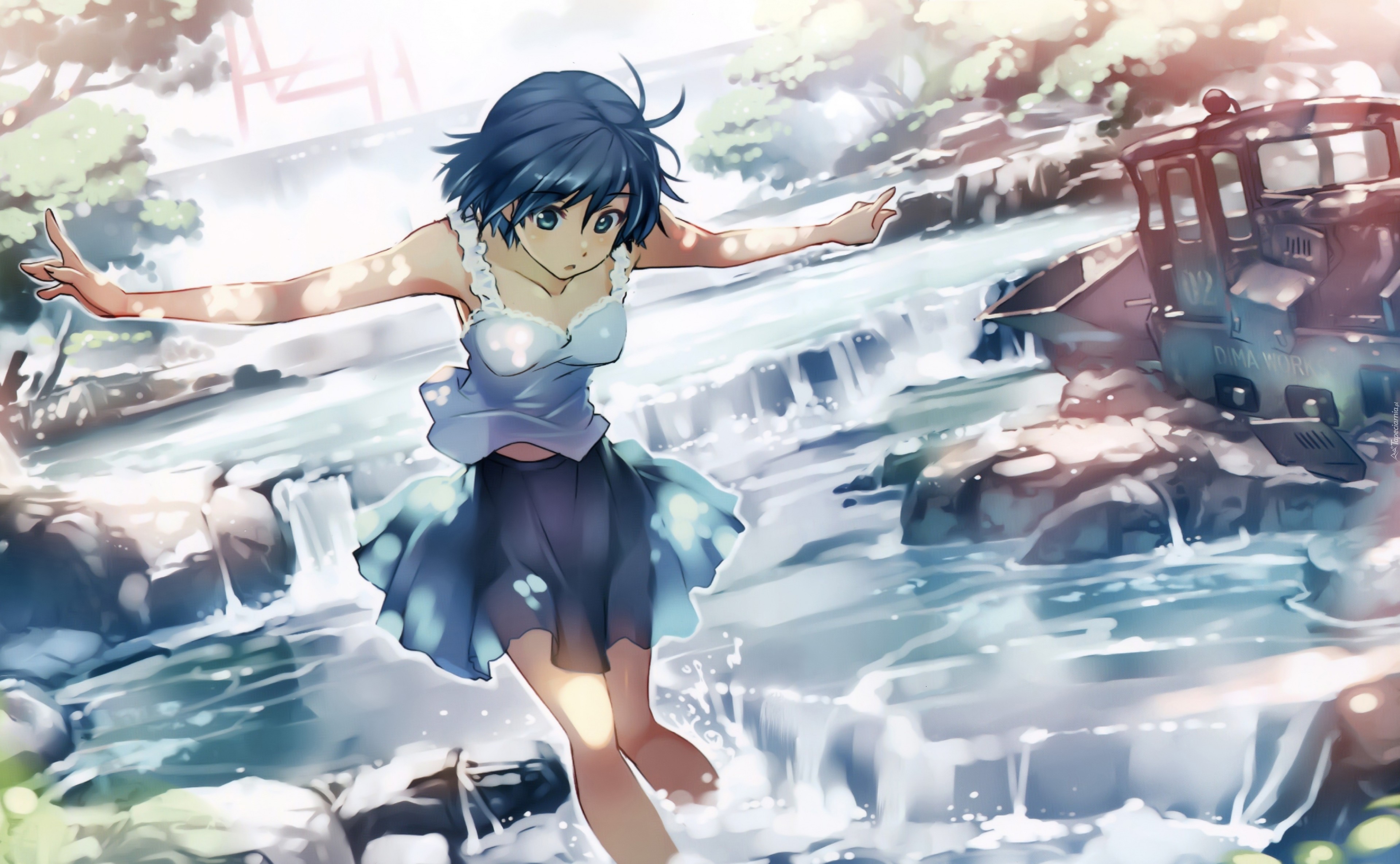 Edytor tapety: Dziewczyna, Woda, Kamienie, Skały