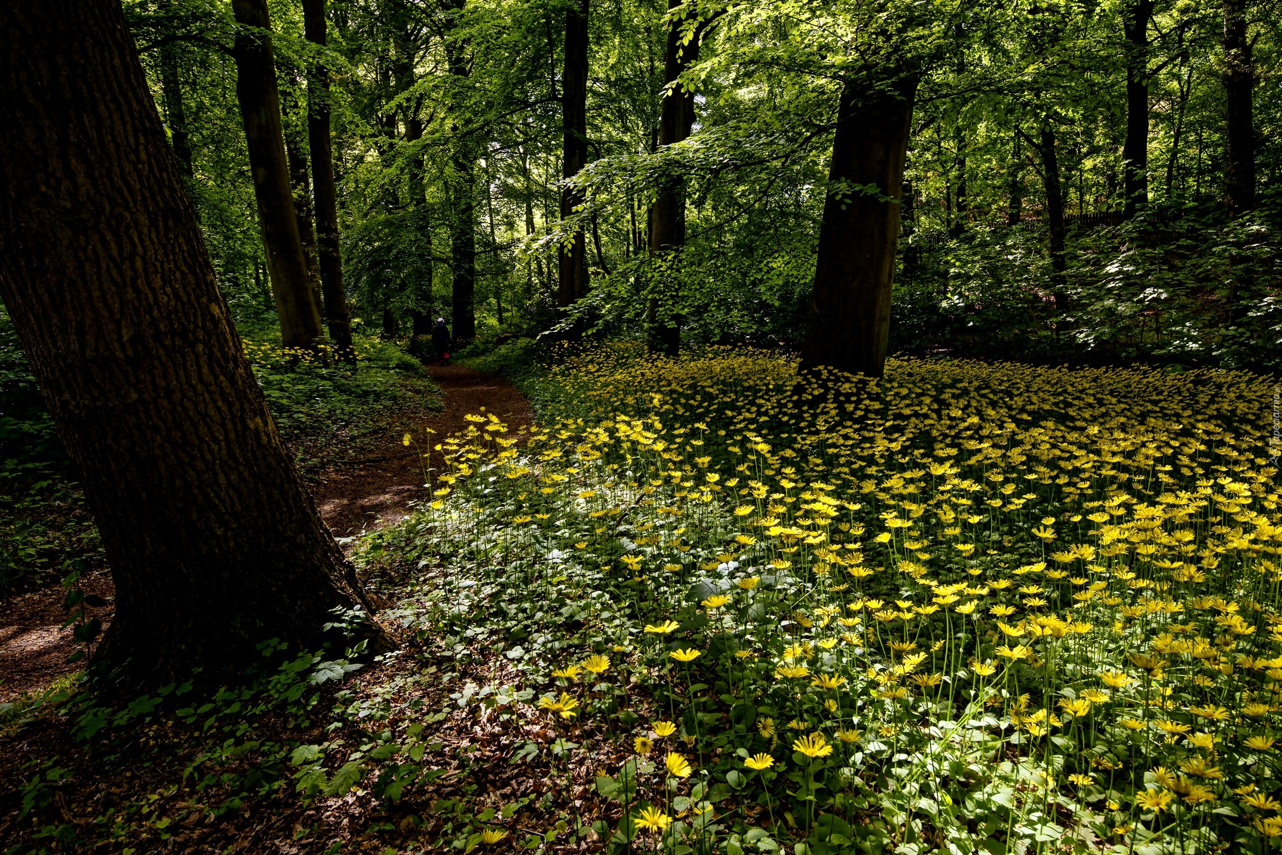 Edytor tapety: Las, Dróżka, Leśne, Kwiaty