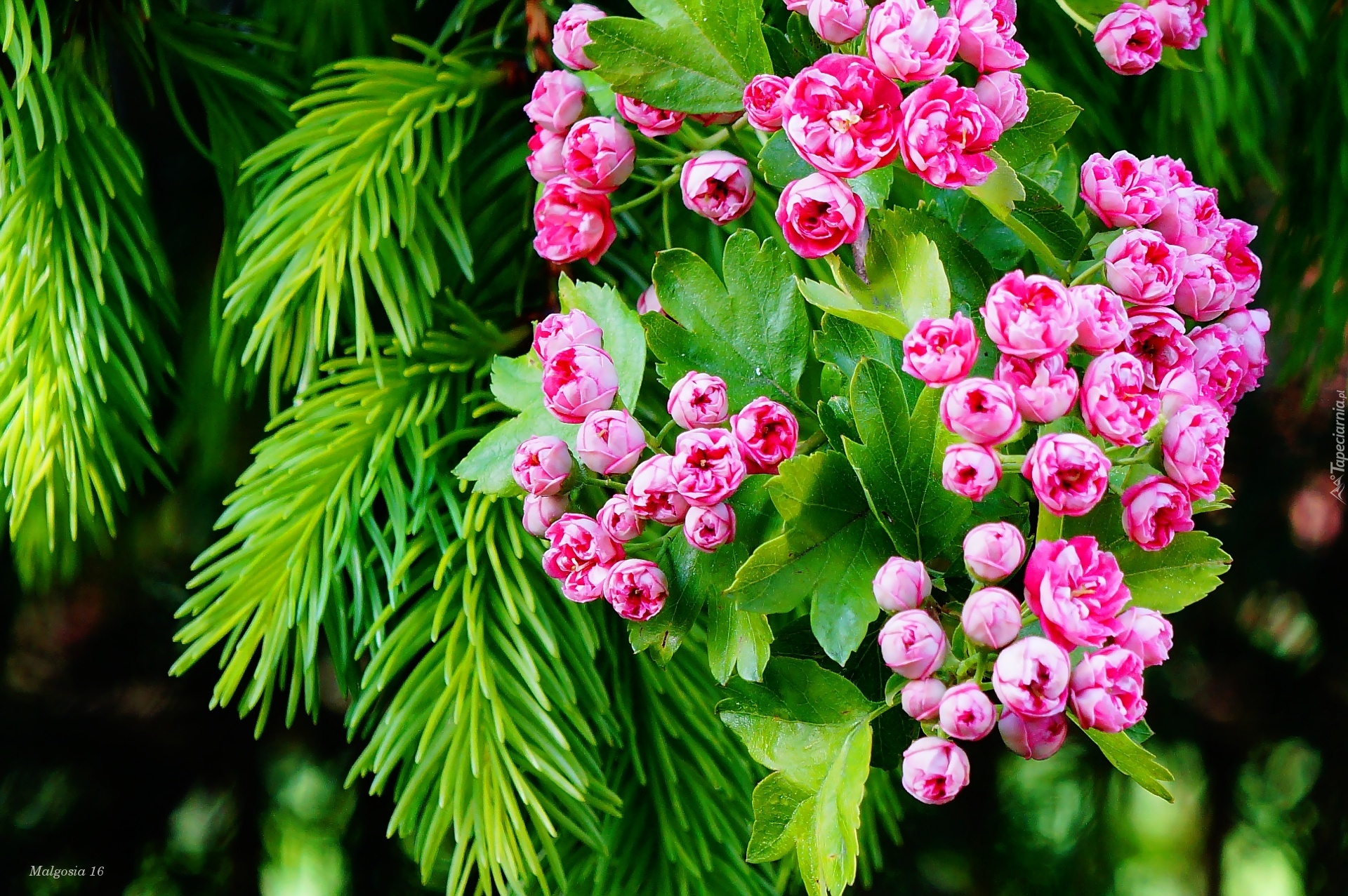 Edytor tapety: Kwitnąca, Gałązka, Głóg, Świerk