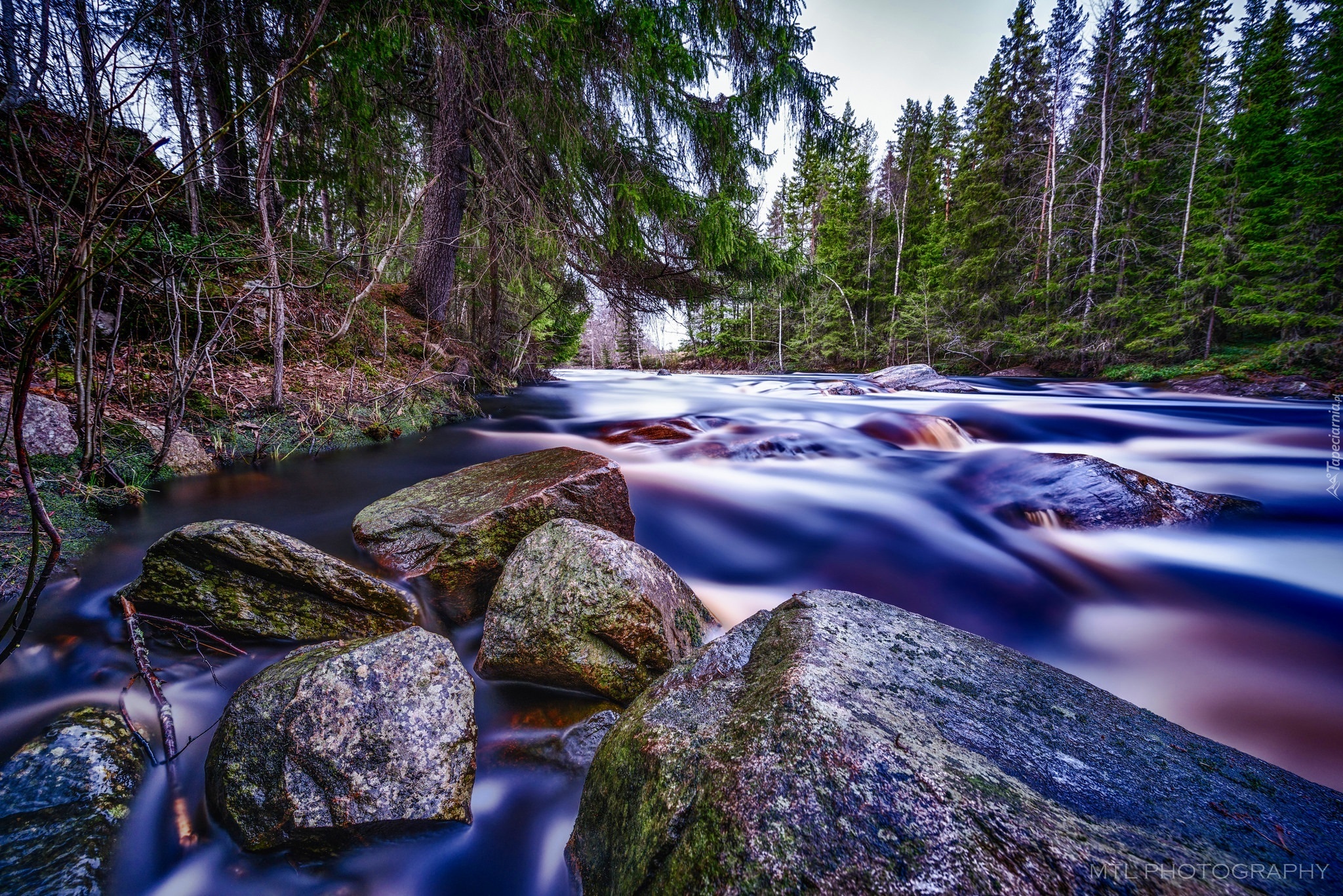 Edytor tapety: Las, Rwąca Rzeka, Kamienie