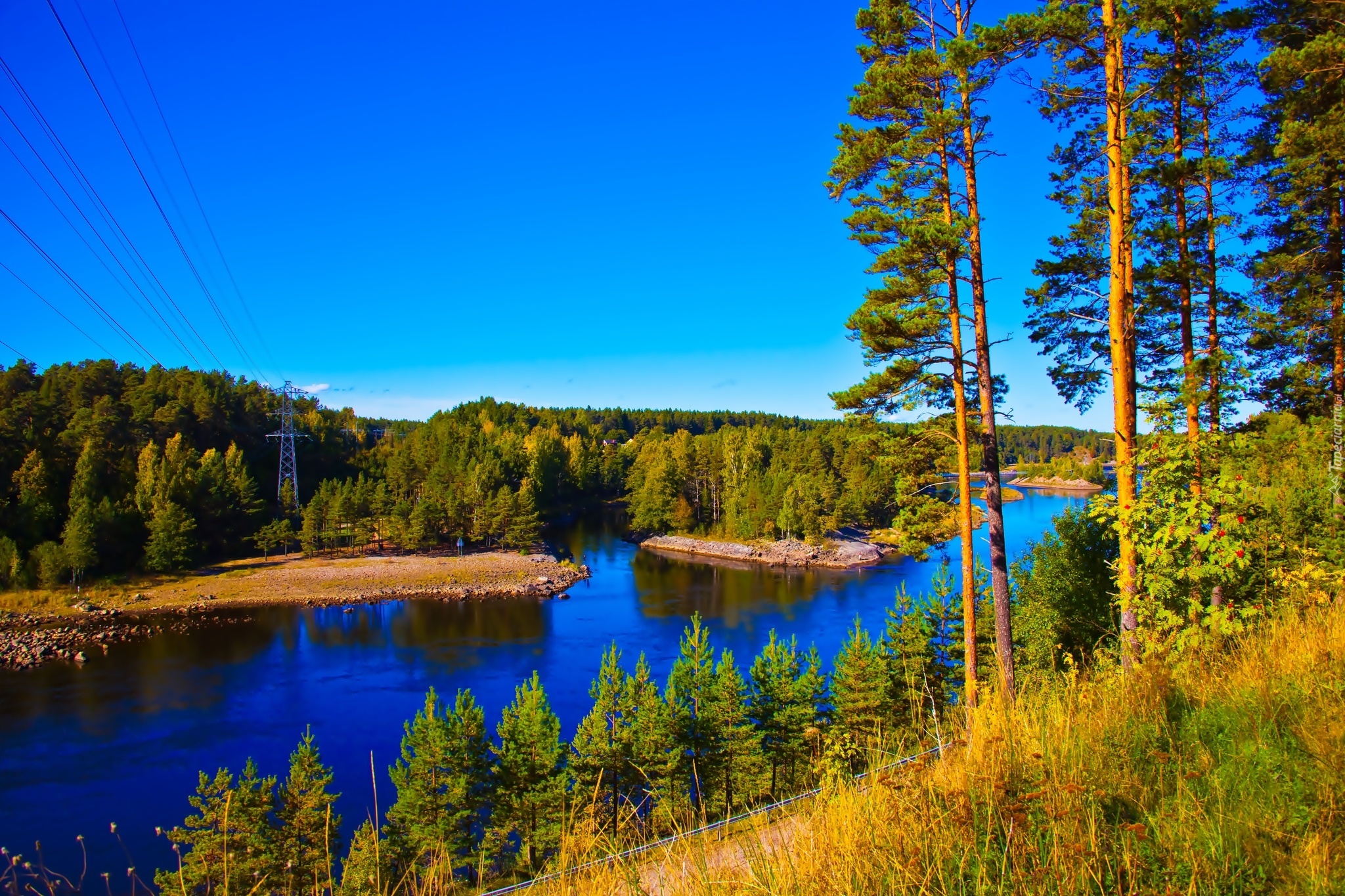 Edytor tapety: Rzeka, Las, Niebo