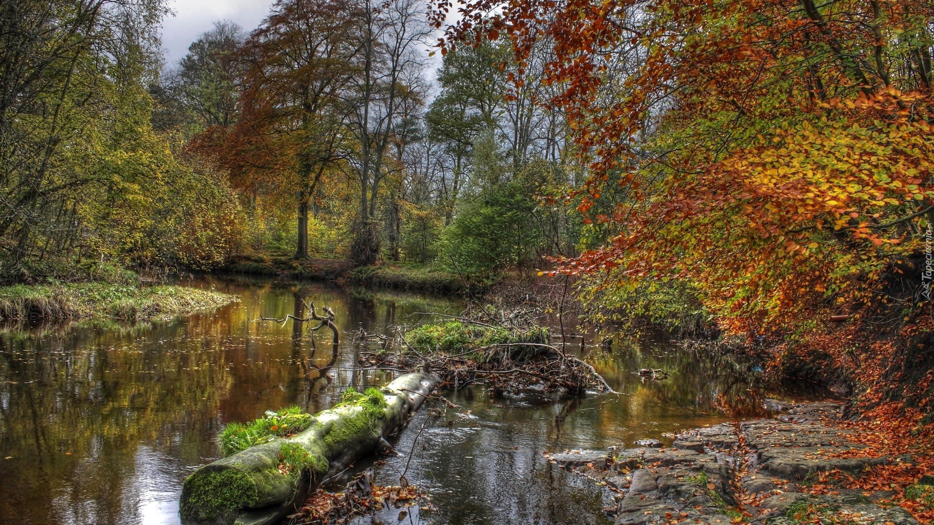 Edytor tapety: Las, Rzeka, Powalone, Drzewo