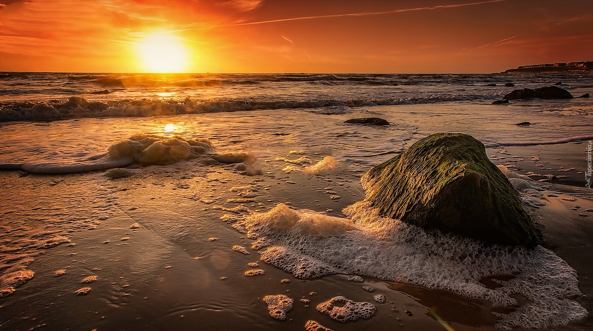 Edytor tapety: Morze, Kamienie, Fale, Zachód, Słońca