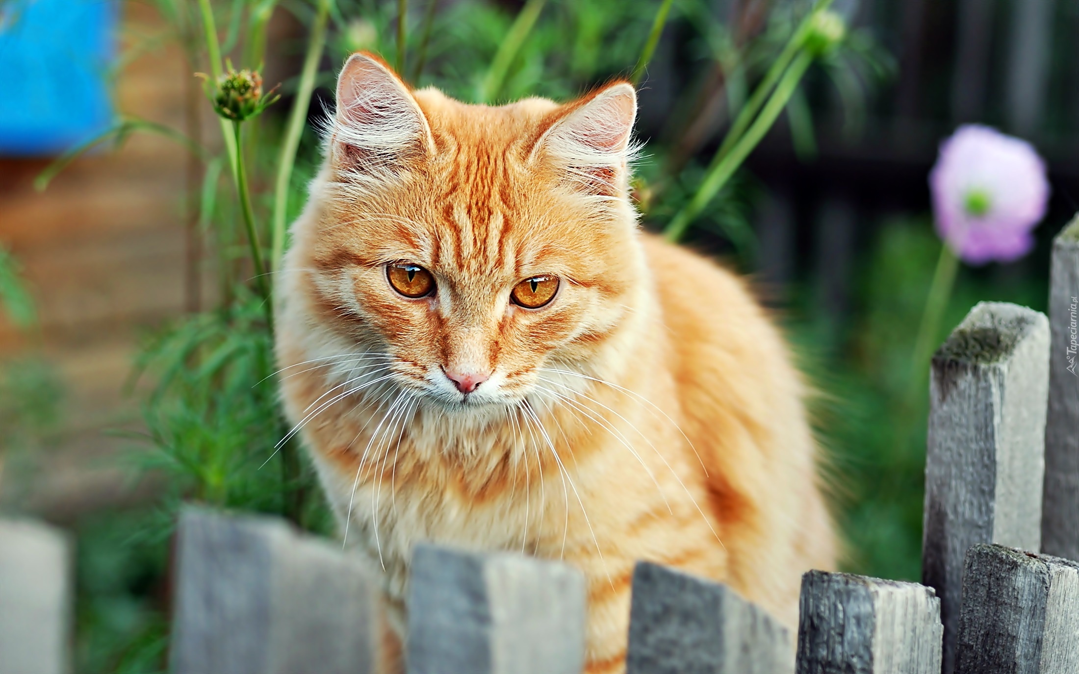 Edytor tapety: Rudy, Kot, Płot, Ogródek, Rozmycie