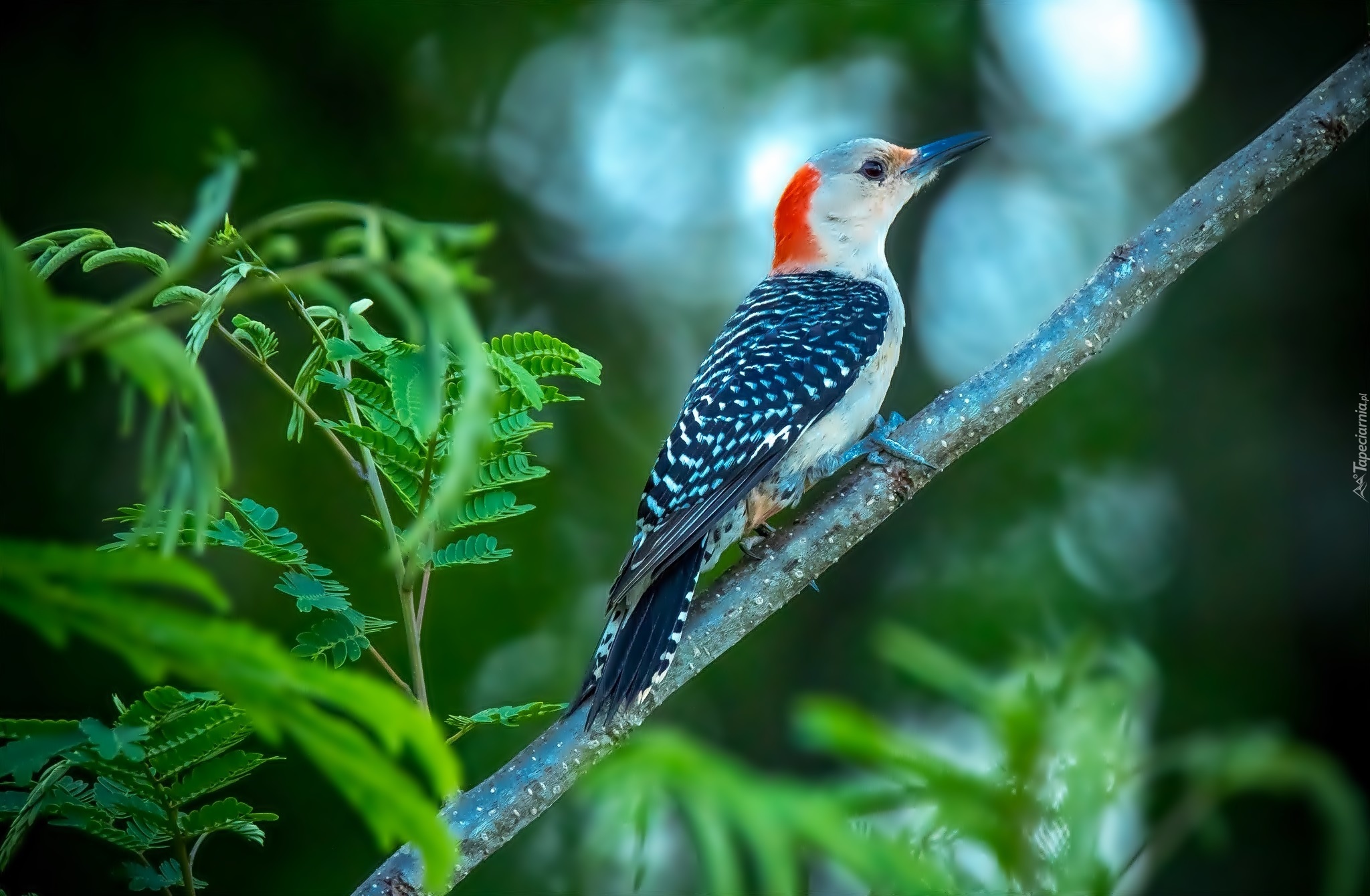 Edytor tapety: Dzięcioł, Gałązka, Liście