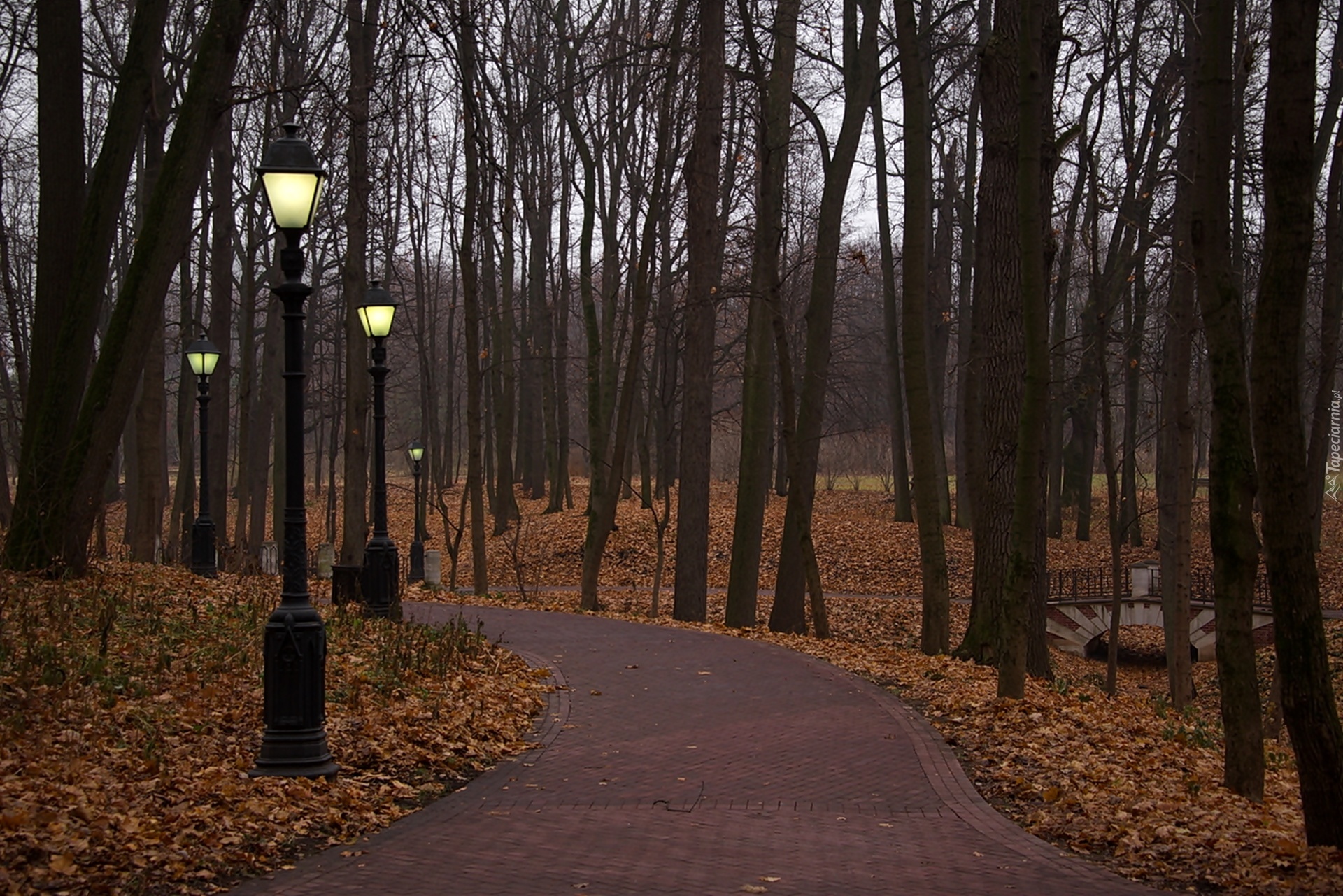 Edytor tapety: Jesień, Park, Alejka, Latarnie