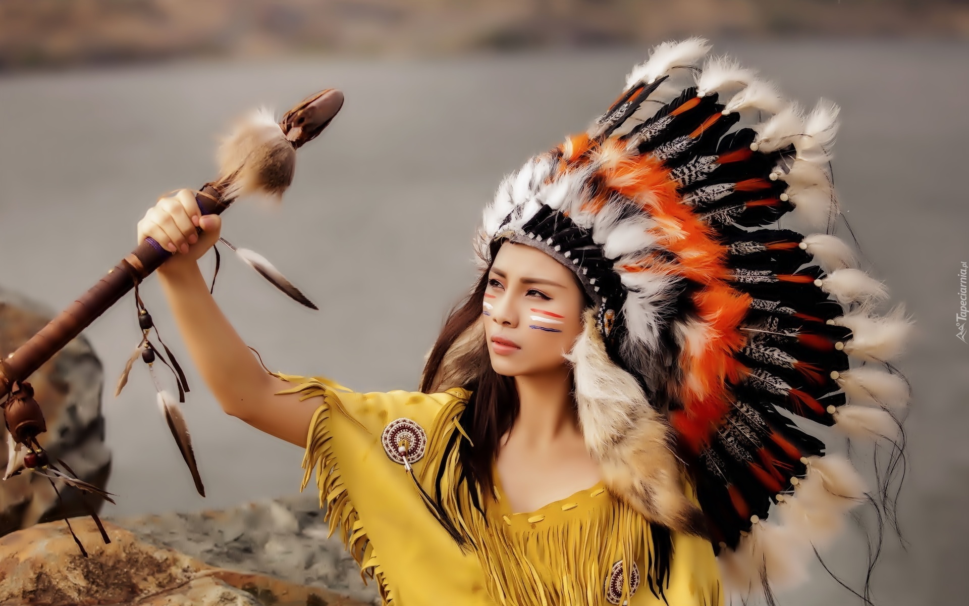 Edytor tapety: Kobieta, Azjatka, Pióropusz