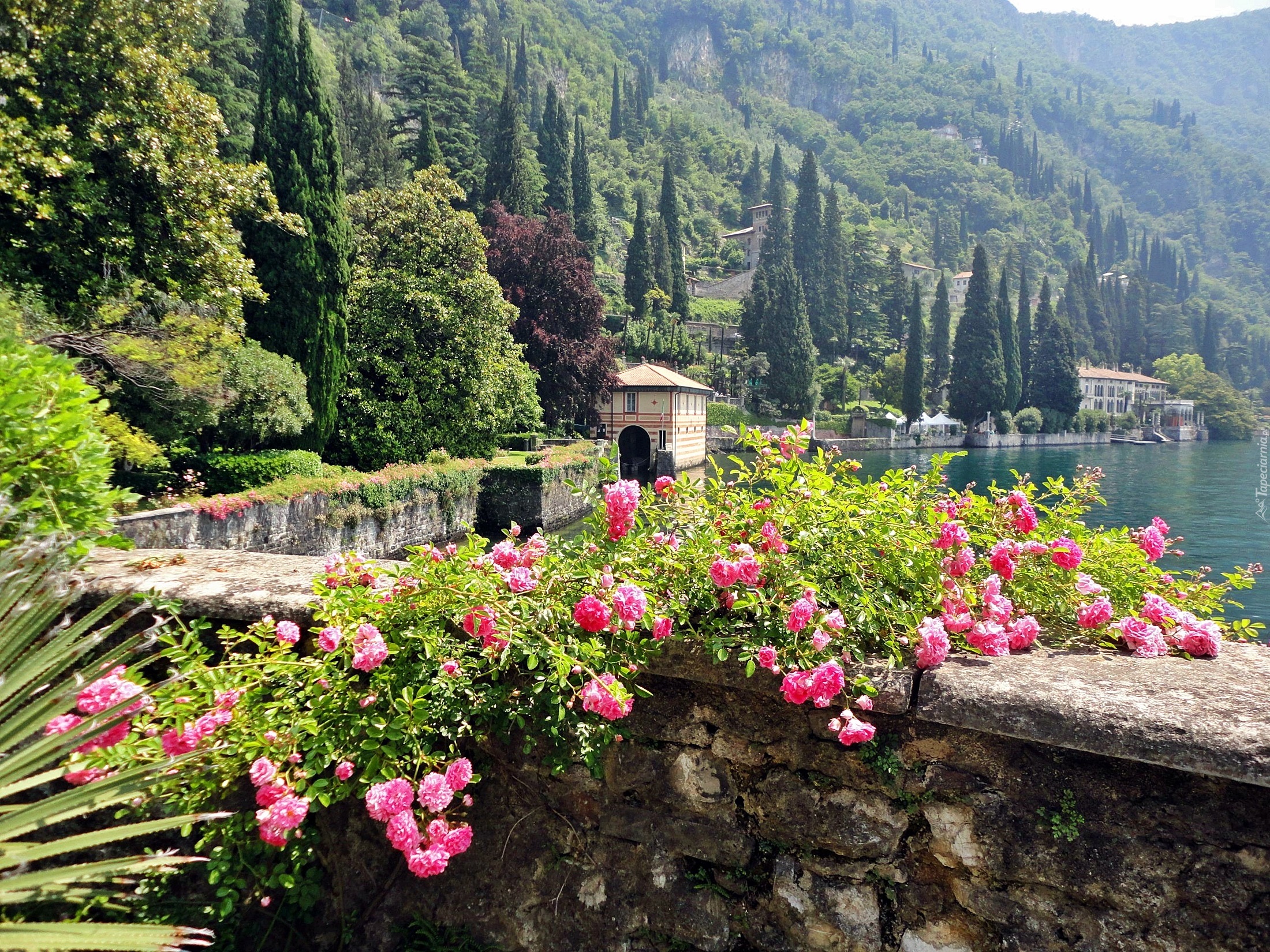 Edytor tapety: Góry, Jezioro, Las, Taras, Róże, Varenna