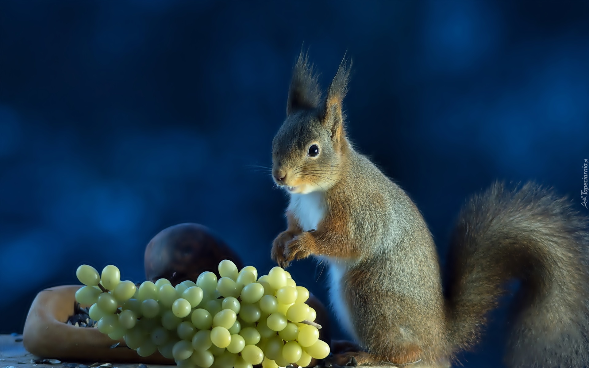Edytor tapety: Wiewiórka, Winogrona
