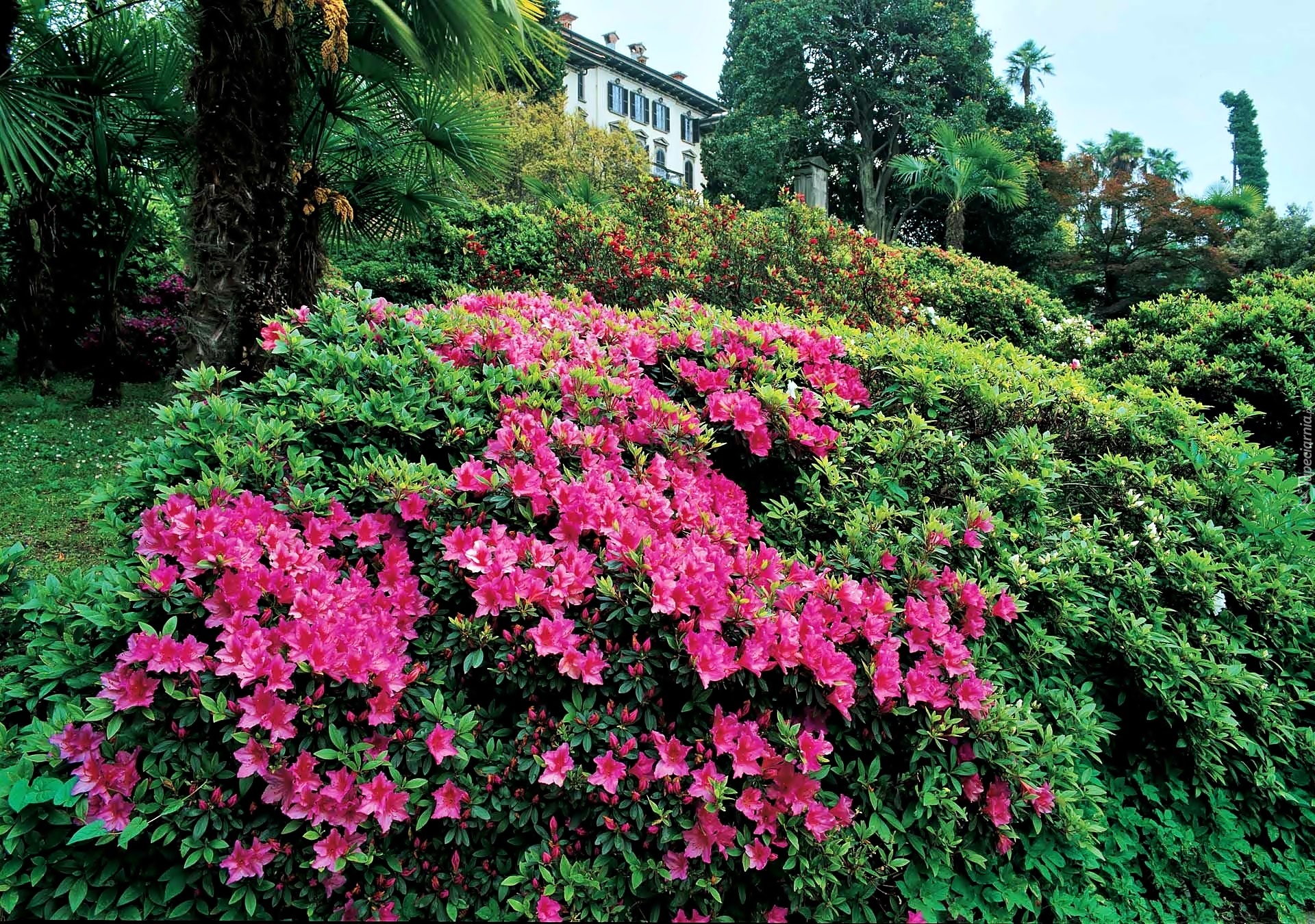 Edytor tapety: Pałac, Wiosna, Park, Rododendrony