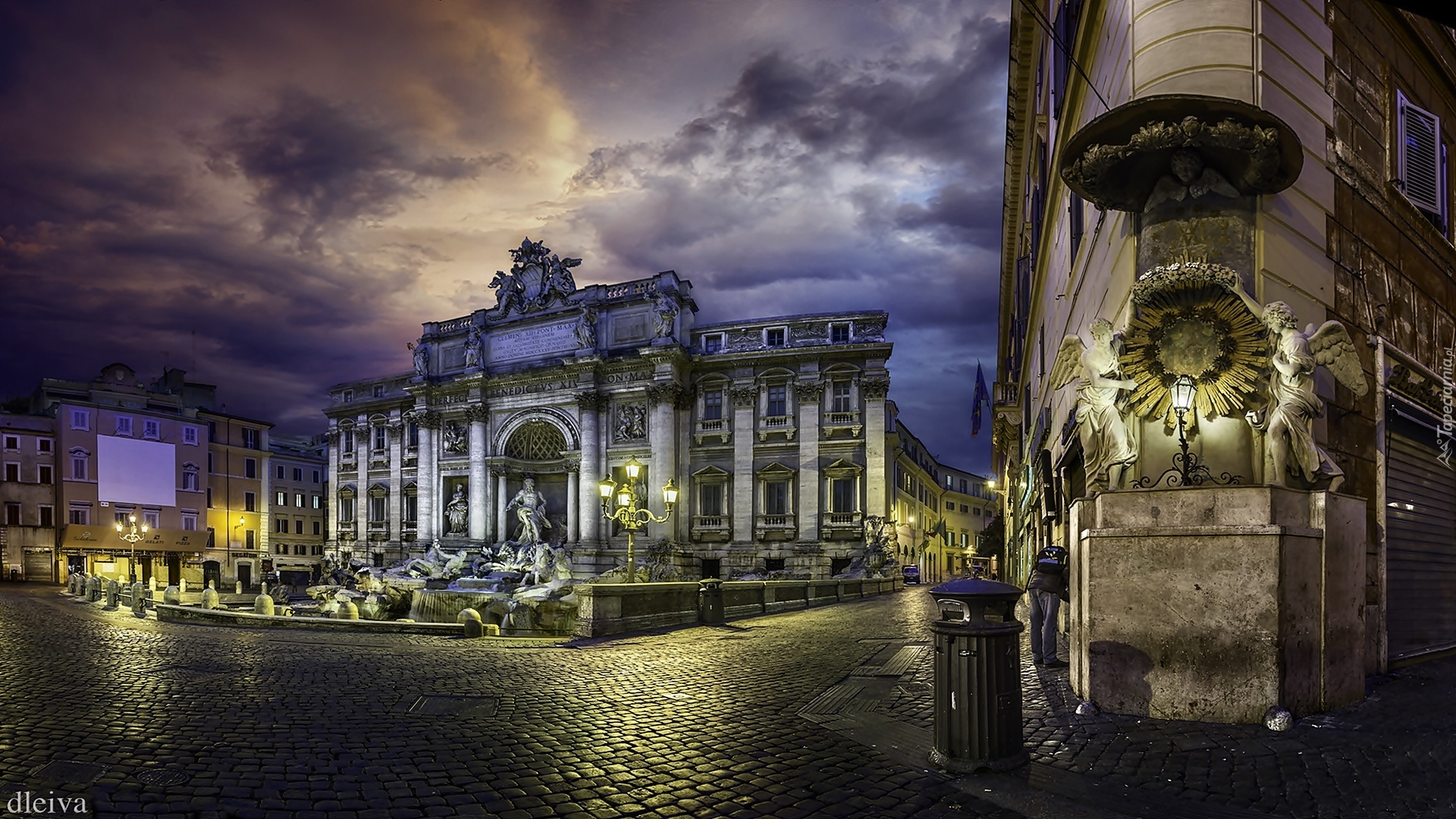 Edytor tapety: Miasto, Nocą, Ulica, Włochy, Rzym