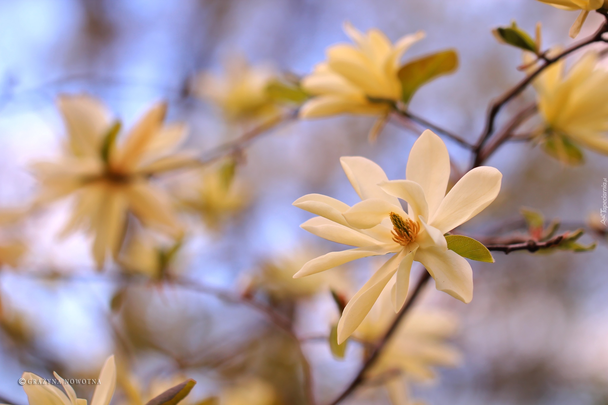 Edytor tapety: Magnolia, Białe, Kwiaty, Krzew