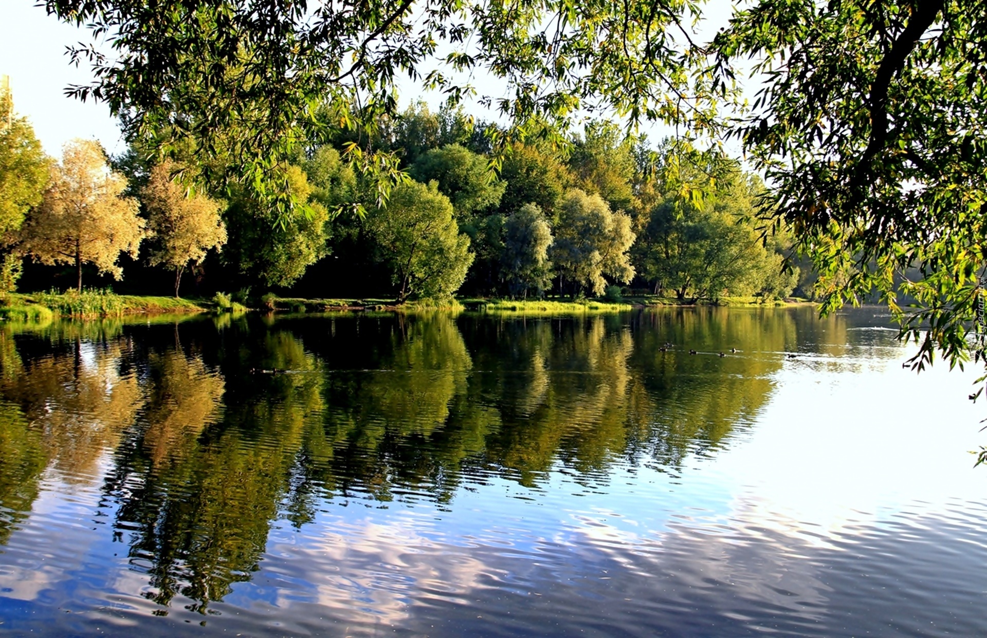 Edytor tapety: Park, Rzeka, Pływające, Kaczki