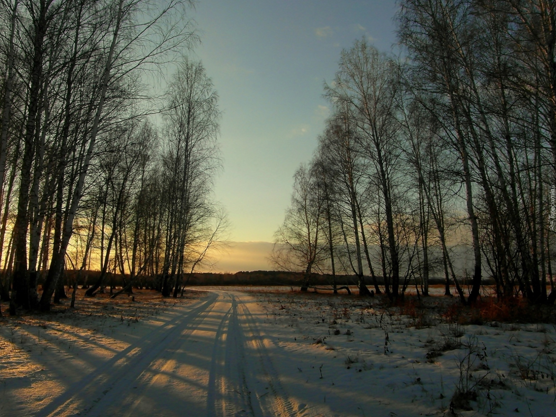 Edytor tapety: Zima, Droga, Przebijające, Światło, Drzewa