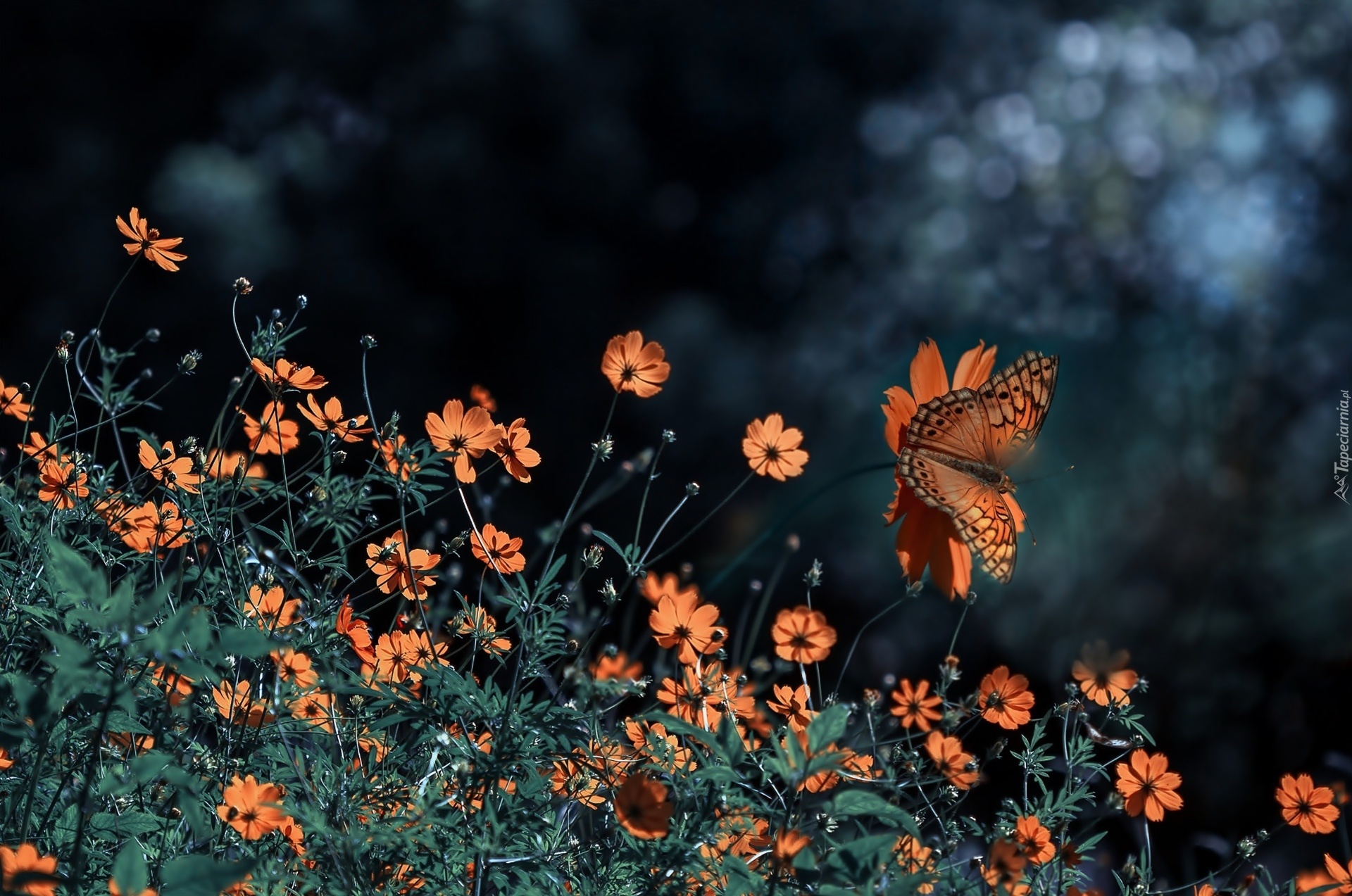 Edytor tapety: Pomarańczowe, Kwiaty, Motyl
