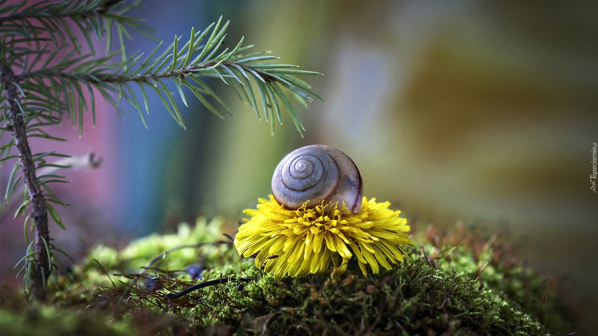 Edytor tapety: Mniszek. Ślimak, Gałązka