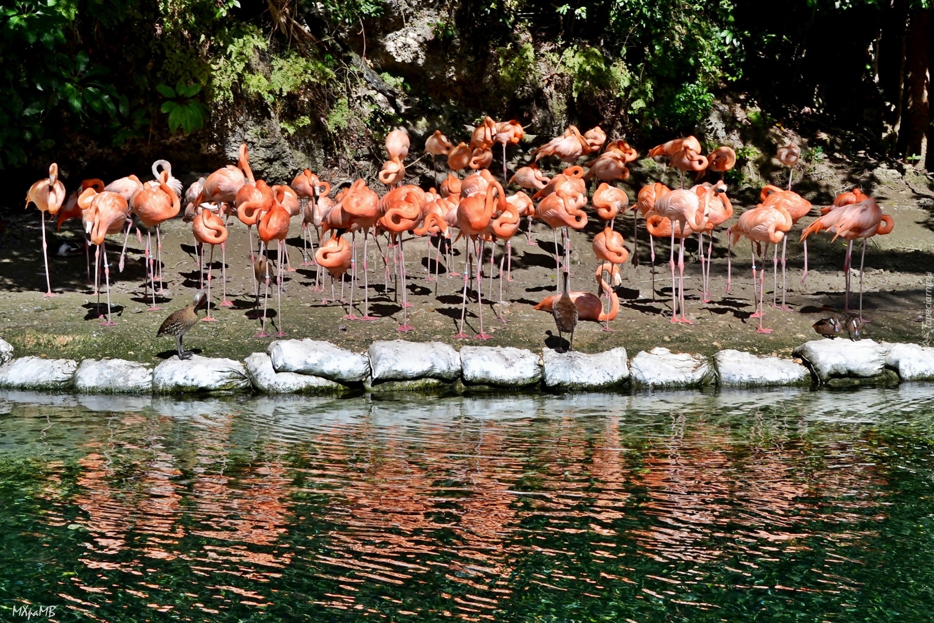Edytor tapety: Flamingi, Woda, Odbicie