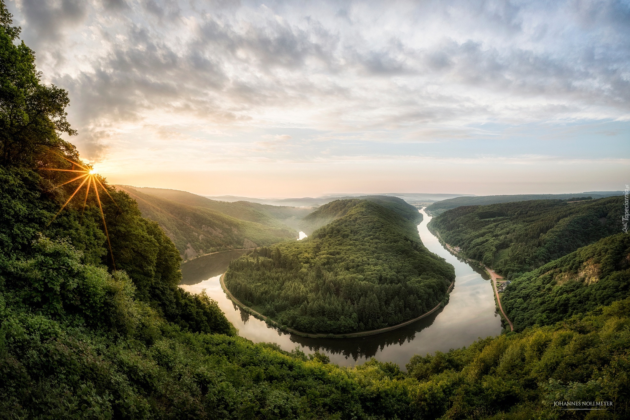 Edytor tapety: Rzeka, Lasy, Promienie słońca