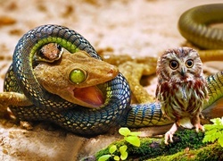 Edytor tapety: Jaszcurka, Wąż, Mała, Sówka