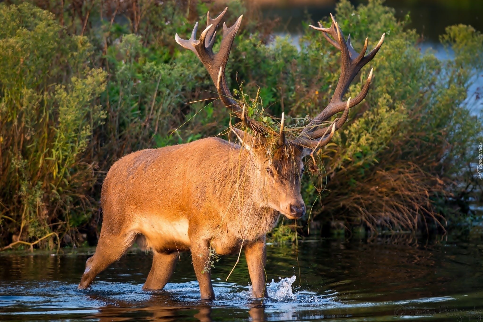 Edytor tapety: Jeleń, Zarosla, Woda