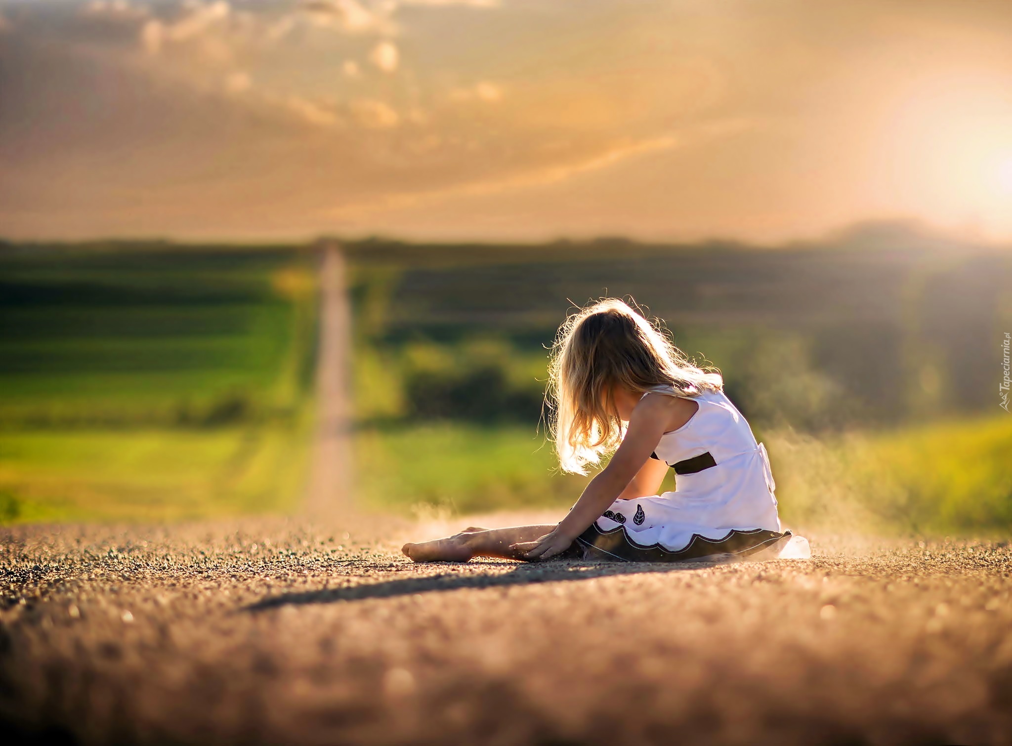 Edytor tapety: Dziewczynka, Droga, Przebijające, Światło