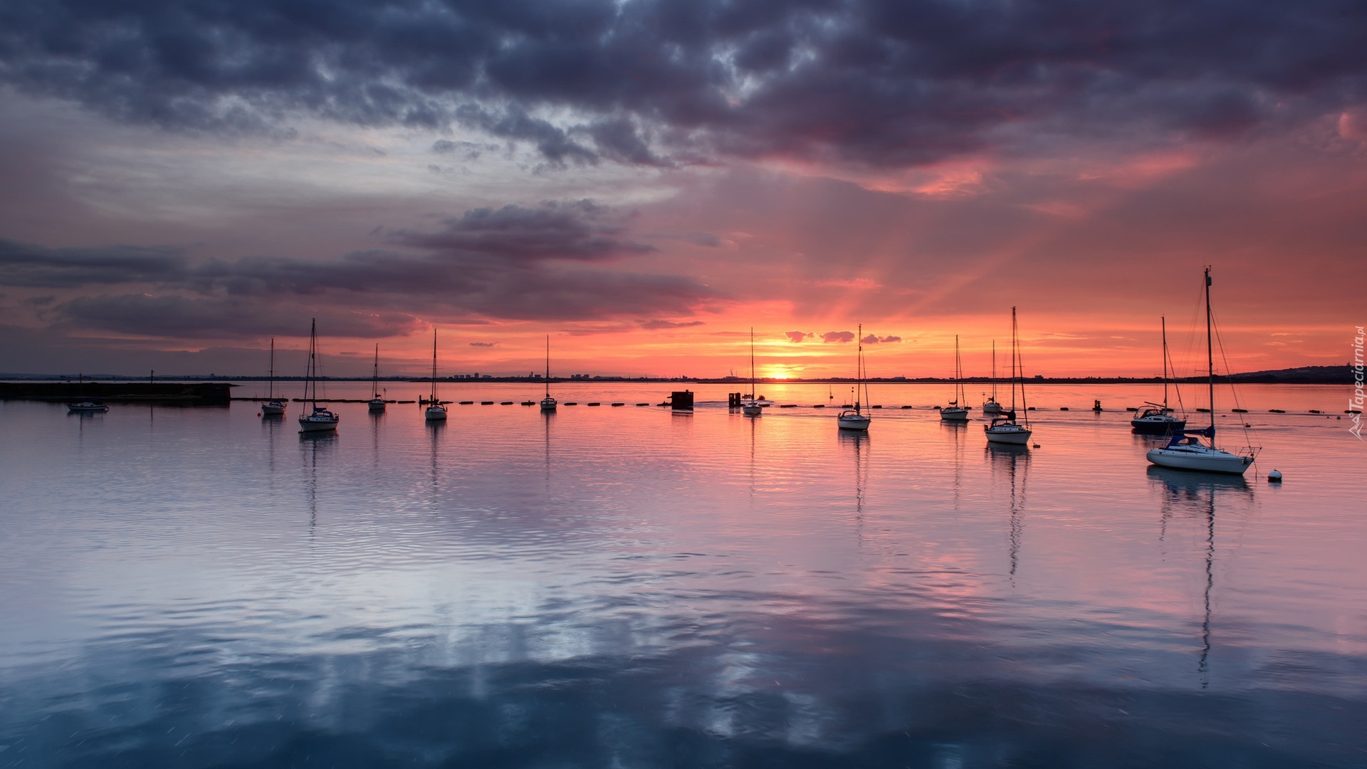 Edytor tapety: Jezioro, Łodzie, Wschód Słońca