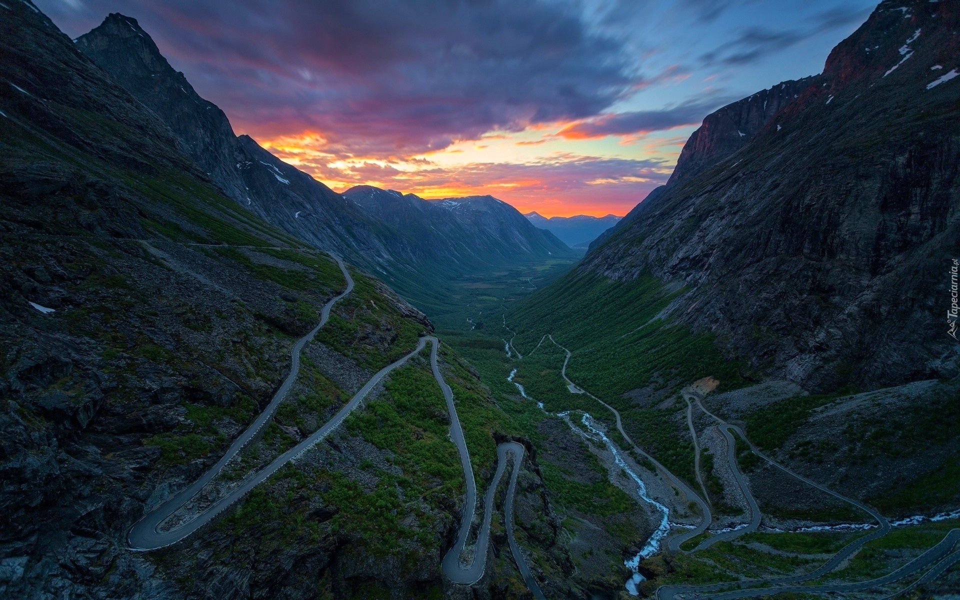 Edytor tapety: Droga, Góry, Zachód Słońca